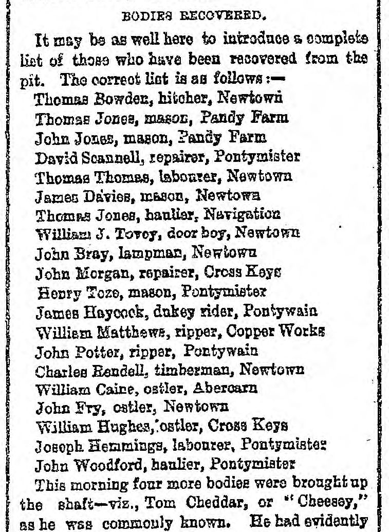 Western Mail; No 3492, 19 Jul 1880, Page 3, Col 3, Bodies Recovered, Joseph Hemmings.