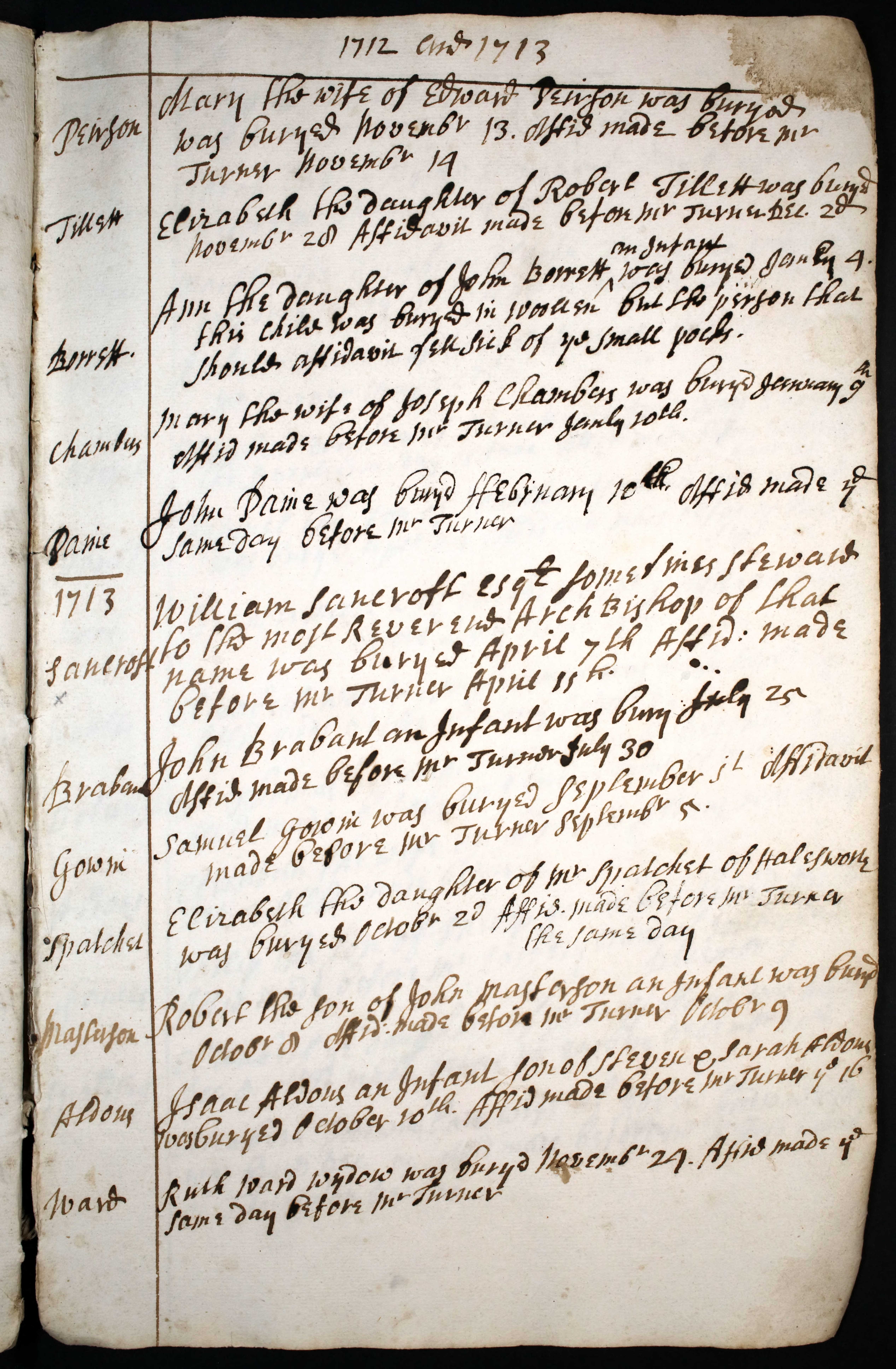 Burial entry for Mary Chambers, 9 Jan 1712/3
