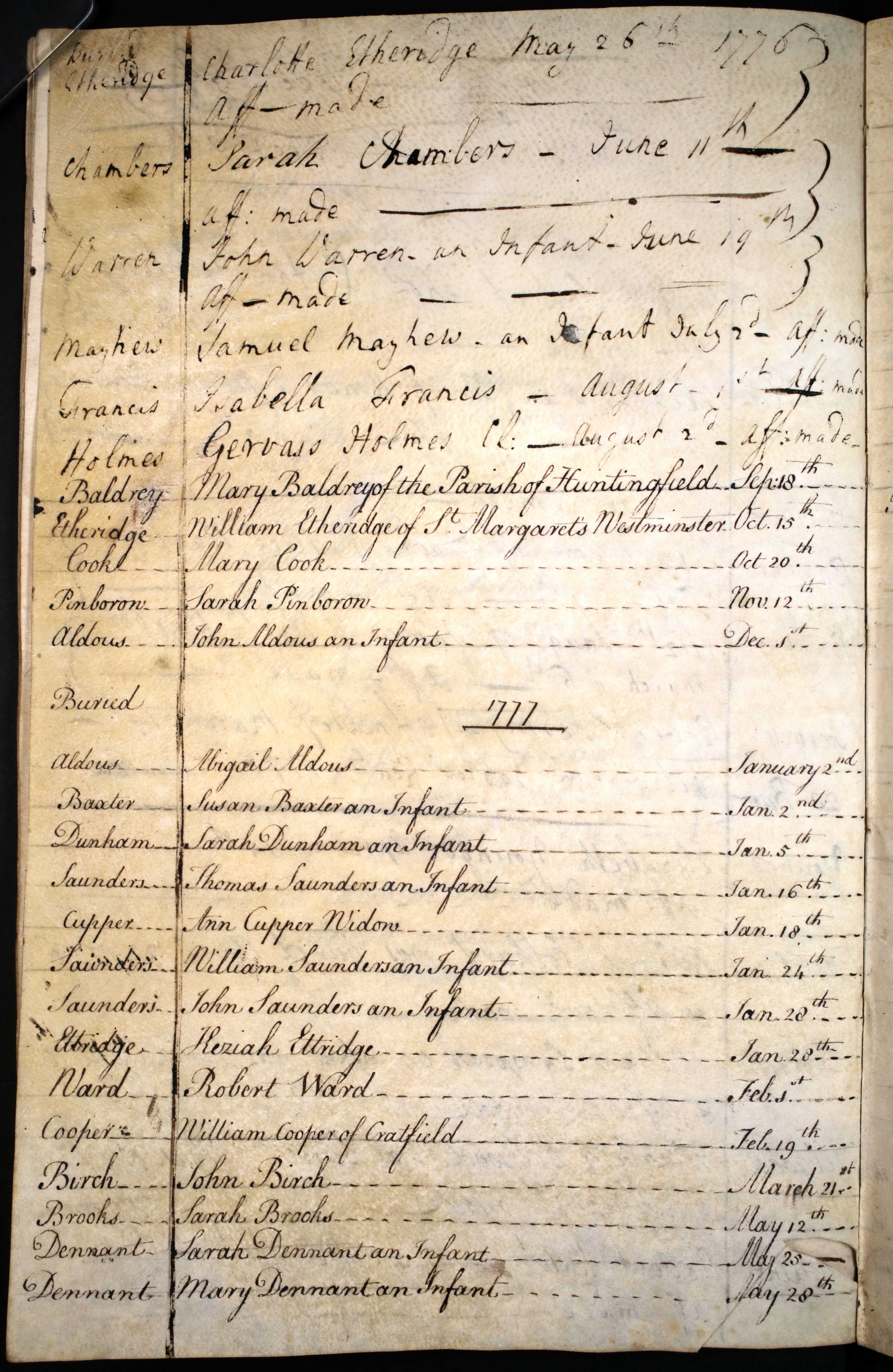 Burial entry for Sarah Chambers, 11 Jun 1776