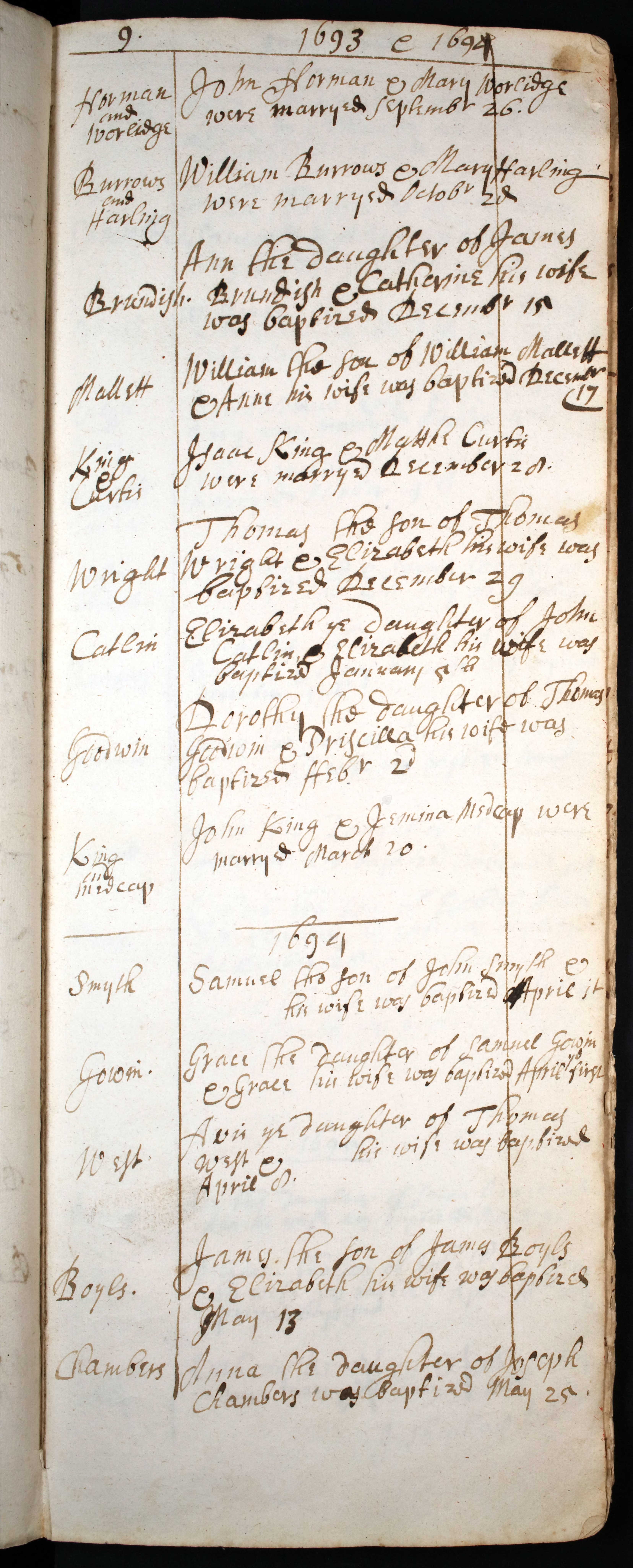 Baptism entry for Anna Chambers, 25 May 1694