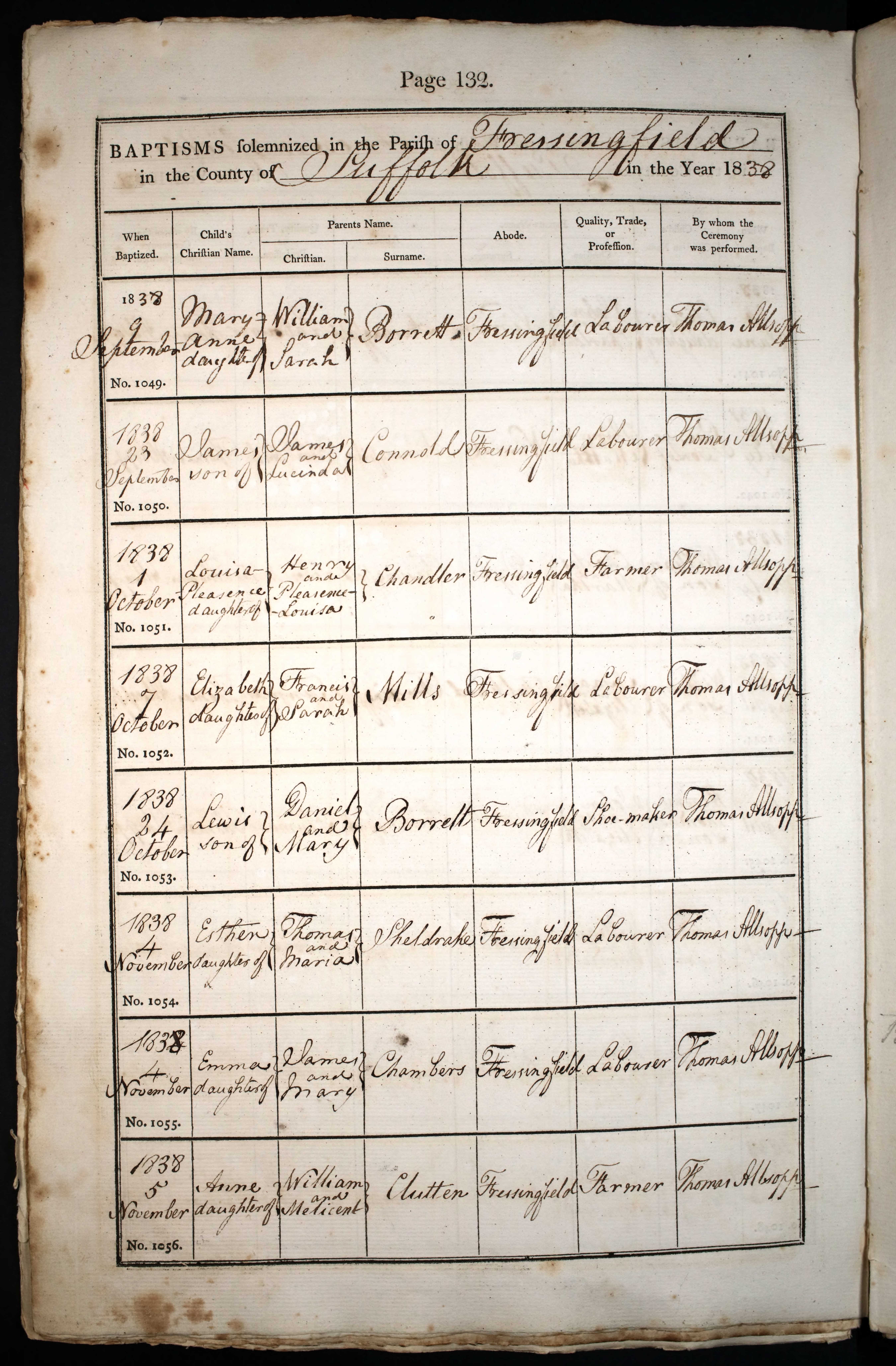 - Emma Maria Chambers was baptised on 4 Nov, 1838 at the Church of St. Peter & St. Paul, Fressingfield, Suffolk, England