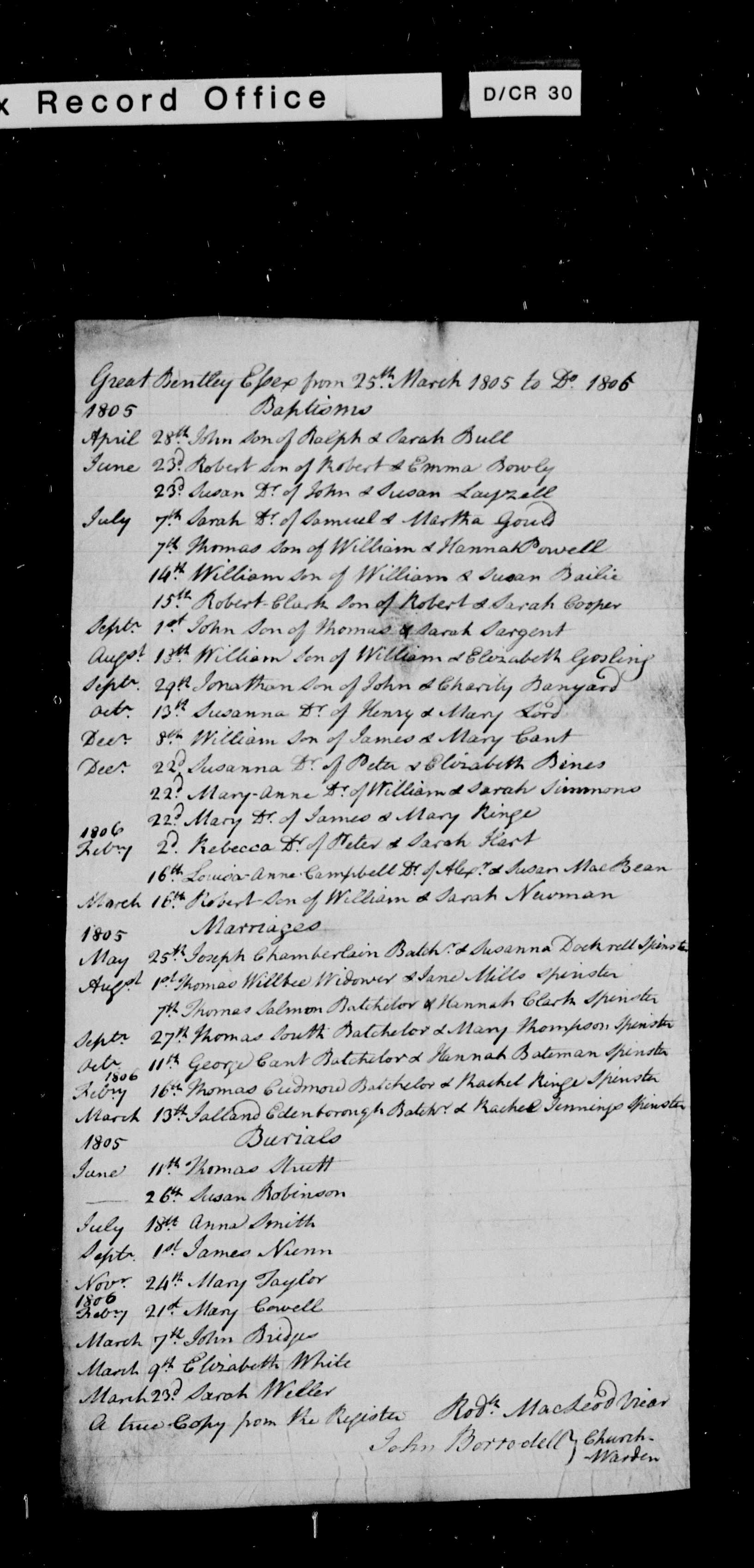 MarriageOfJosephChamberlainAndSusannaDockrell1805GreatBentleyBT