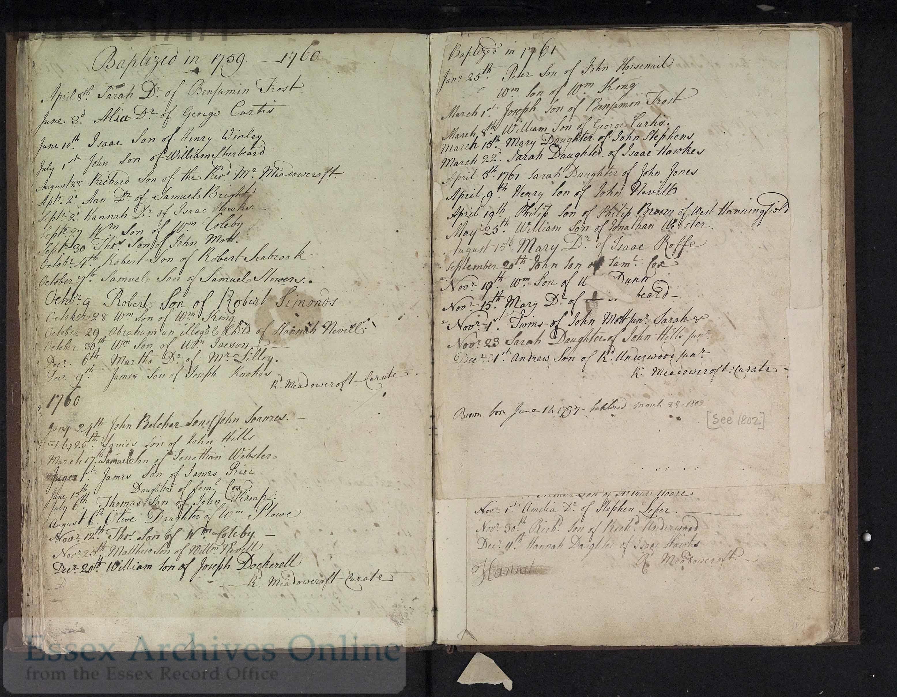 Parish Registers of All Saints, Rettendon, Essex; Baptism of William Dockerell, 20 Dec 1760.