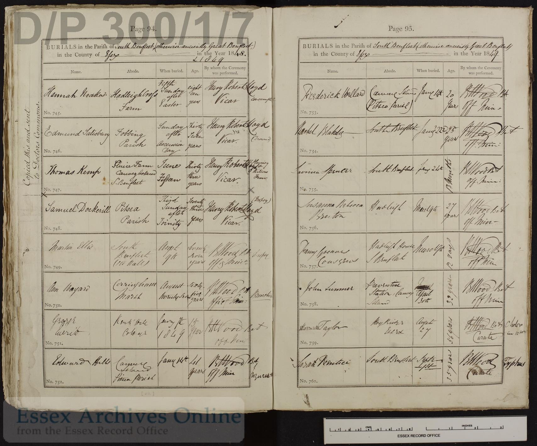 Cited from Parish Registers of St. Mary, South Benfleet, Essex, England (Church of England)