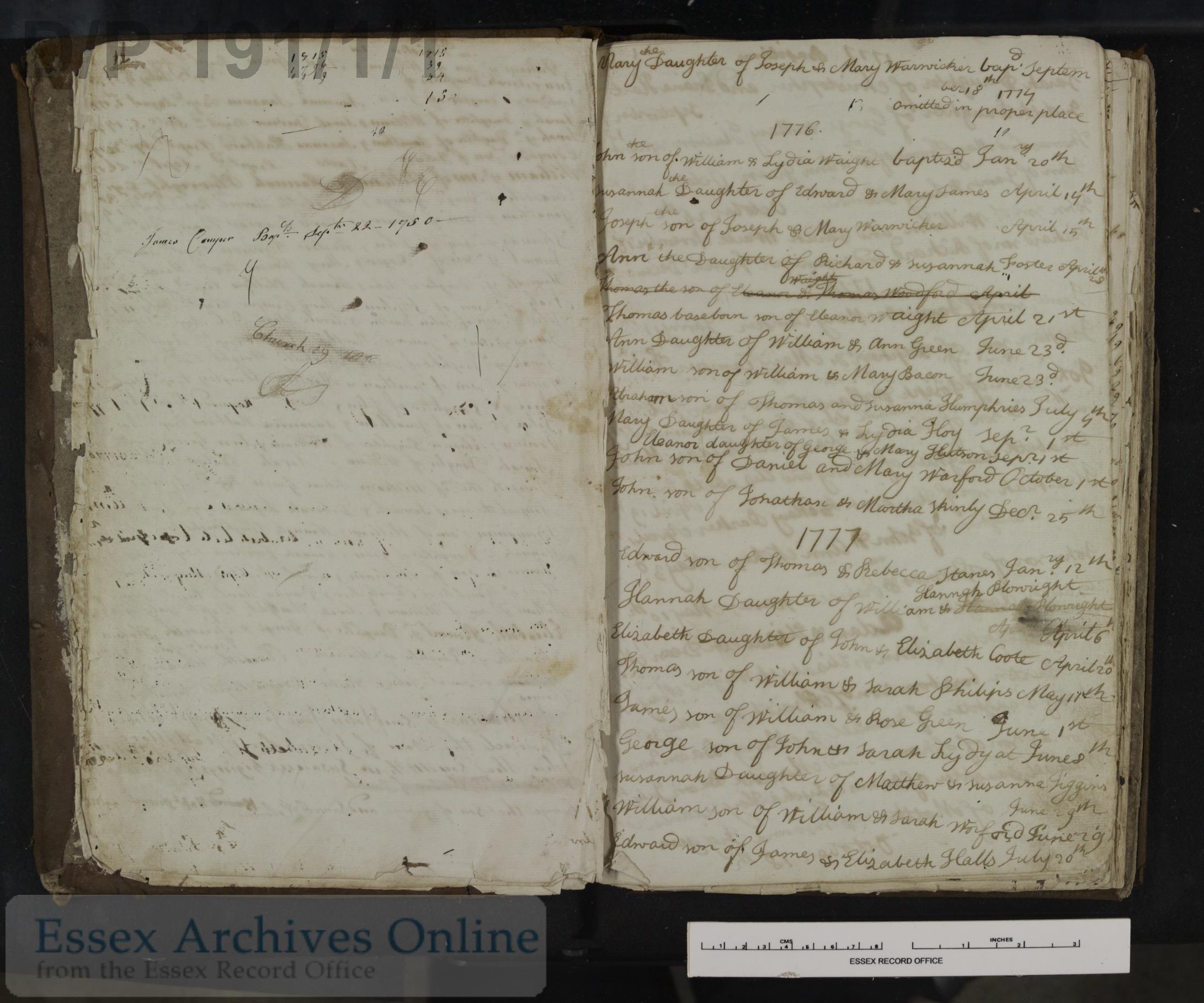 Parish Registers of St Peter and St Paul, Hockley, Essex; Note of baptism entry for James Camper, 22 Sep 1750.
