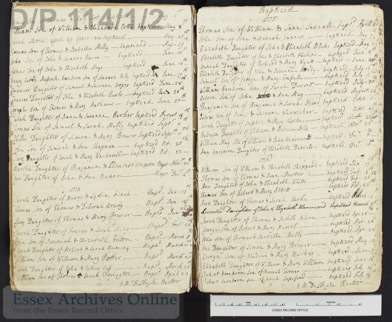 Parish Registers of St. John the Baptist, Danbury, Essex, England; Baptism entry for John Felton, 5 Mar 1775.
