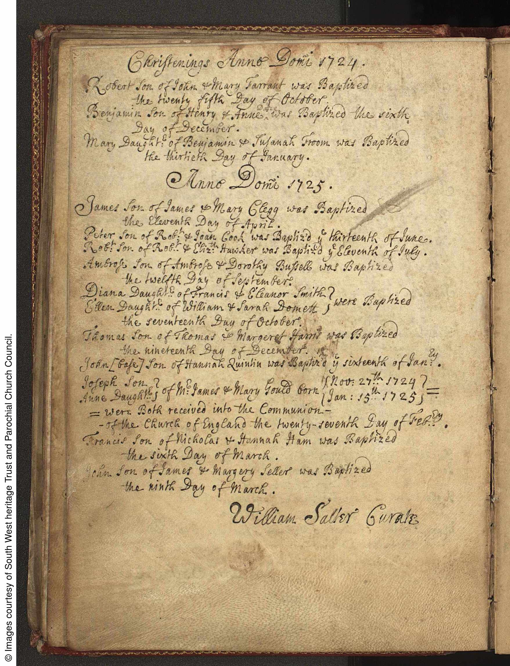 Parish Registers of St Michael, Shute, Devon; Baptism of Robert Farrant, 25 Oct 1724.