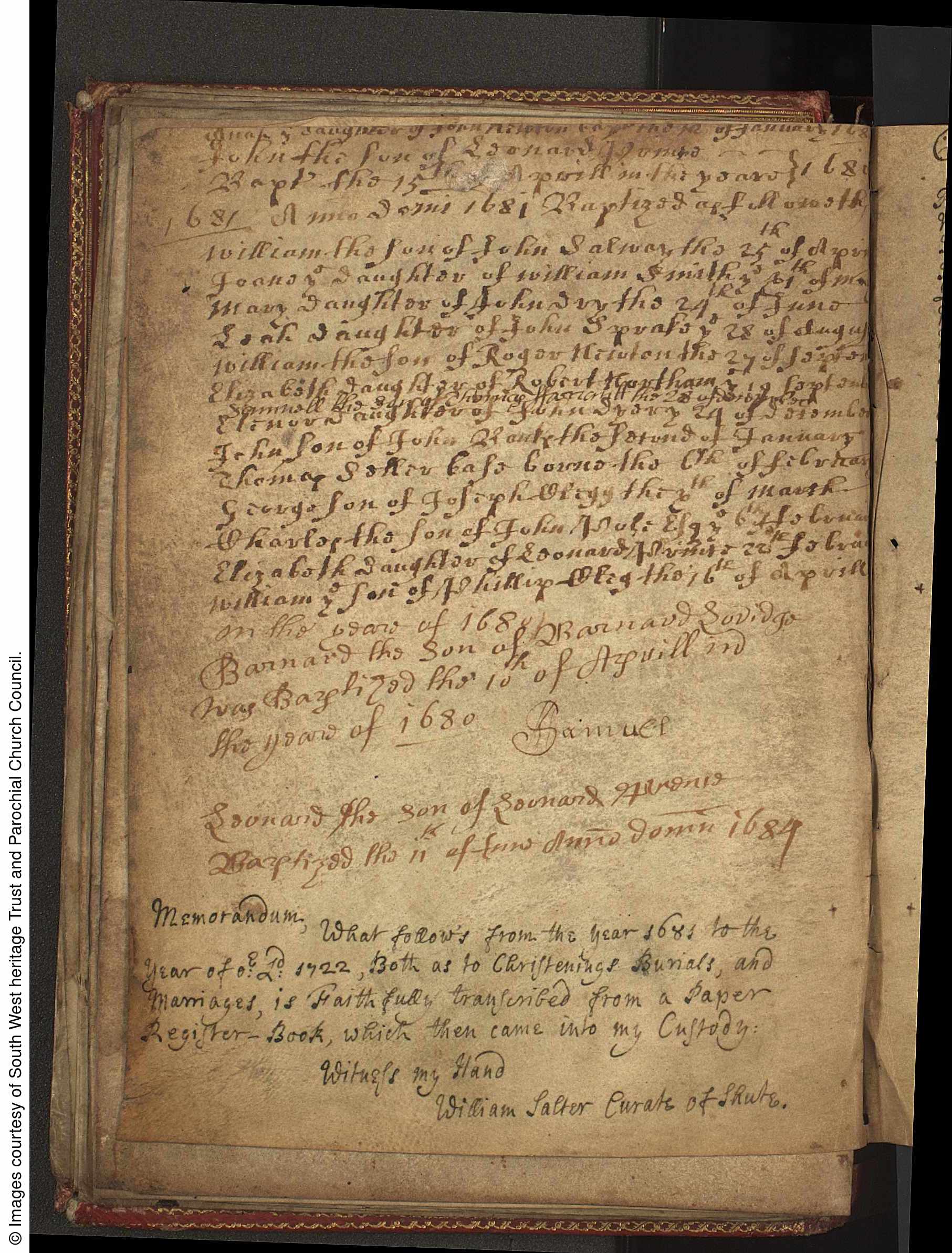 Cited from Parish Registers of St Michael, Shute, Devon (Church of England)