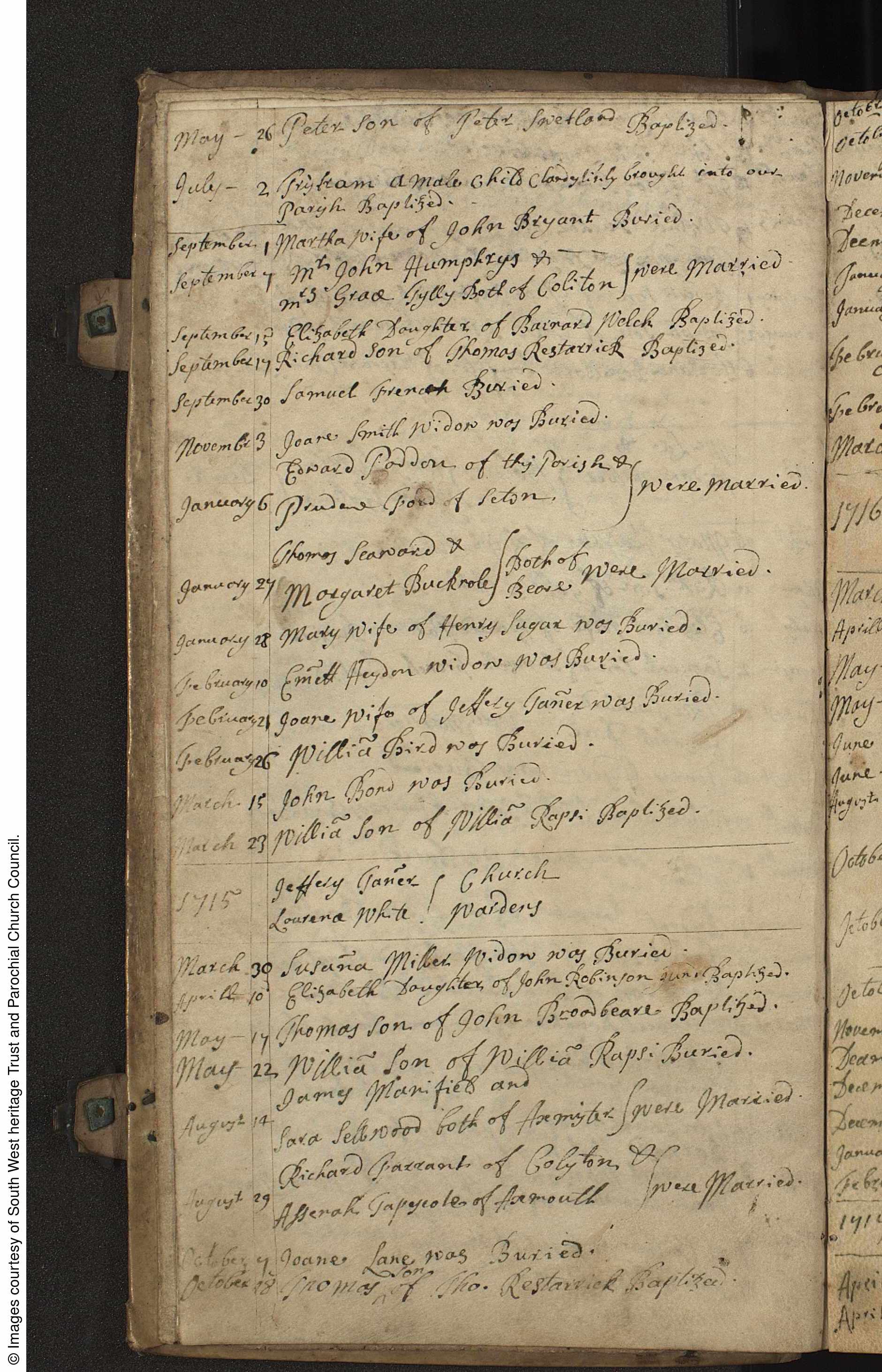 - Peter Swetland was baptised on 26 May, 1714 at St. Michael's Church, Axmouth, Devon, England