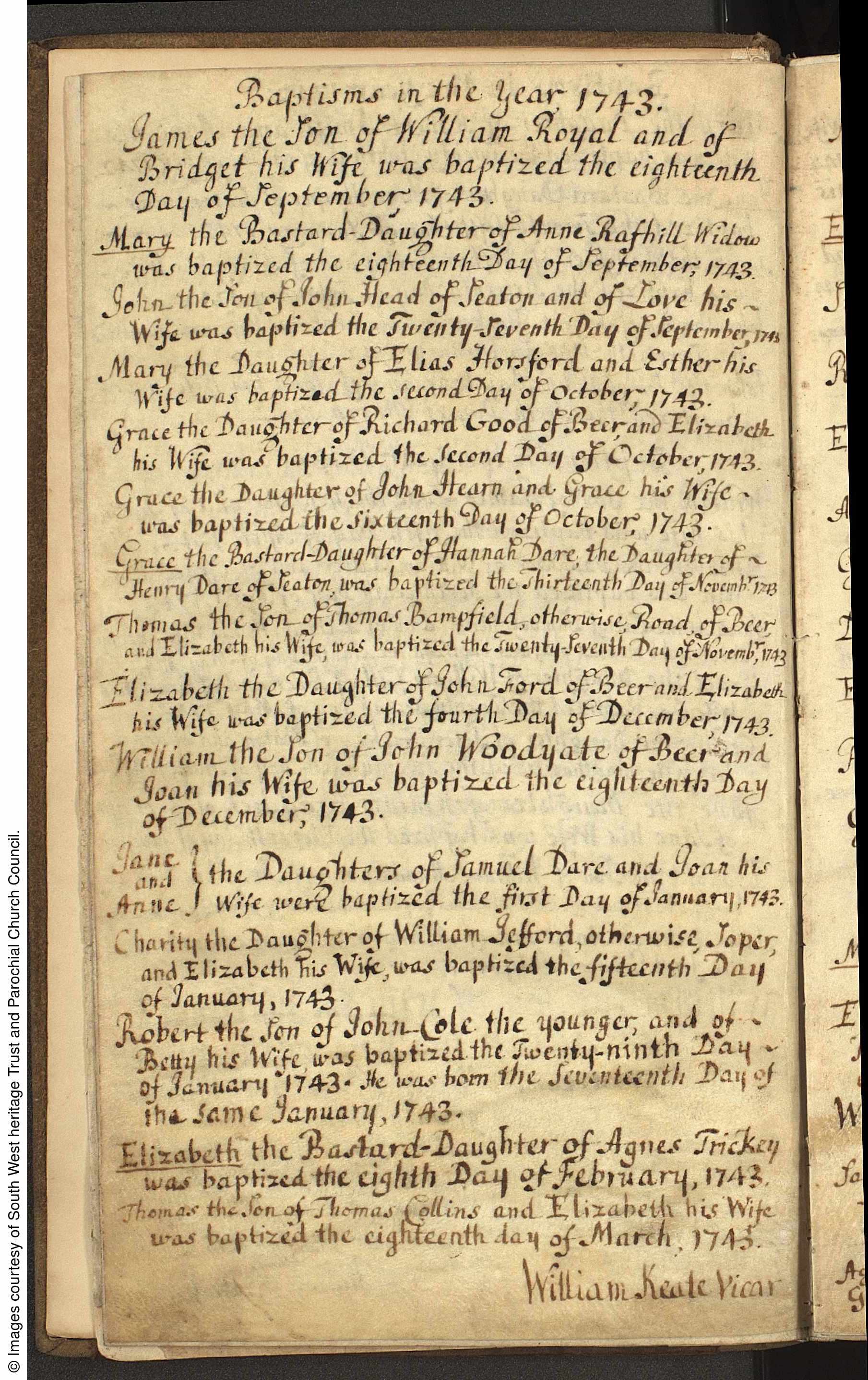 Cited from Parish Registers of St. Gregory, Seaton & Beer, Devon (Church of England)