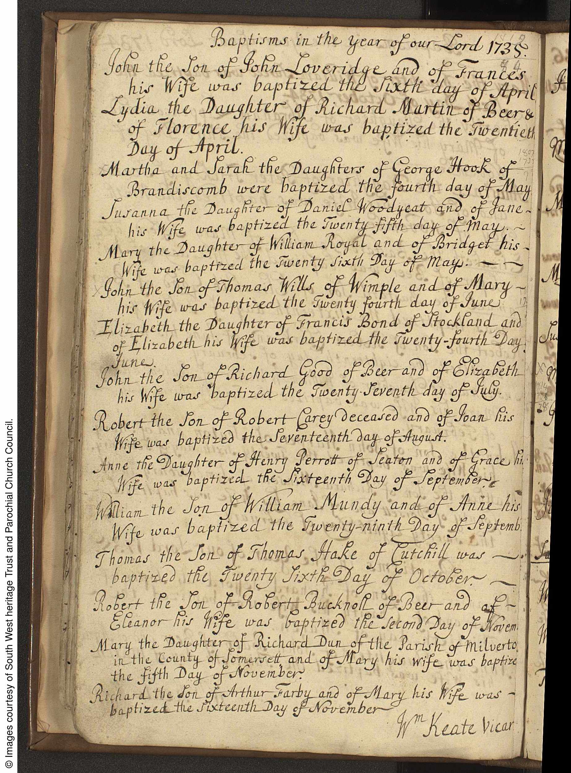 Cited from Parish Registers of St. Gregory, Seaton & Beer, Devon (Church of England)