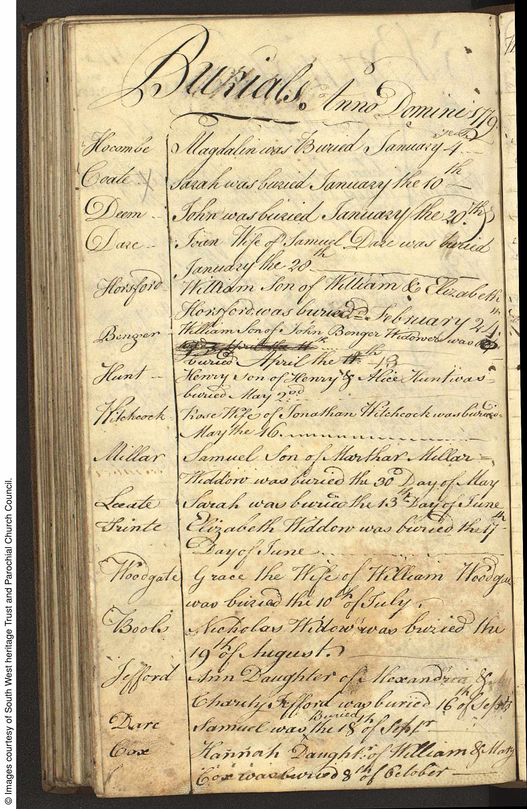 - Joan Sanders★ was buried on 28 Jan, 1779 at St. Gregory's Church, Seaton, Devon, England