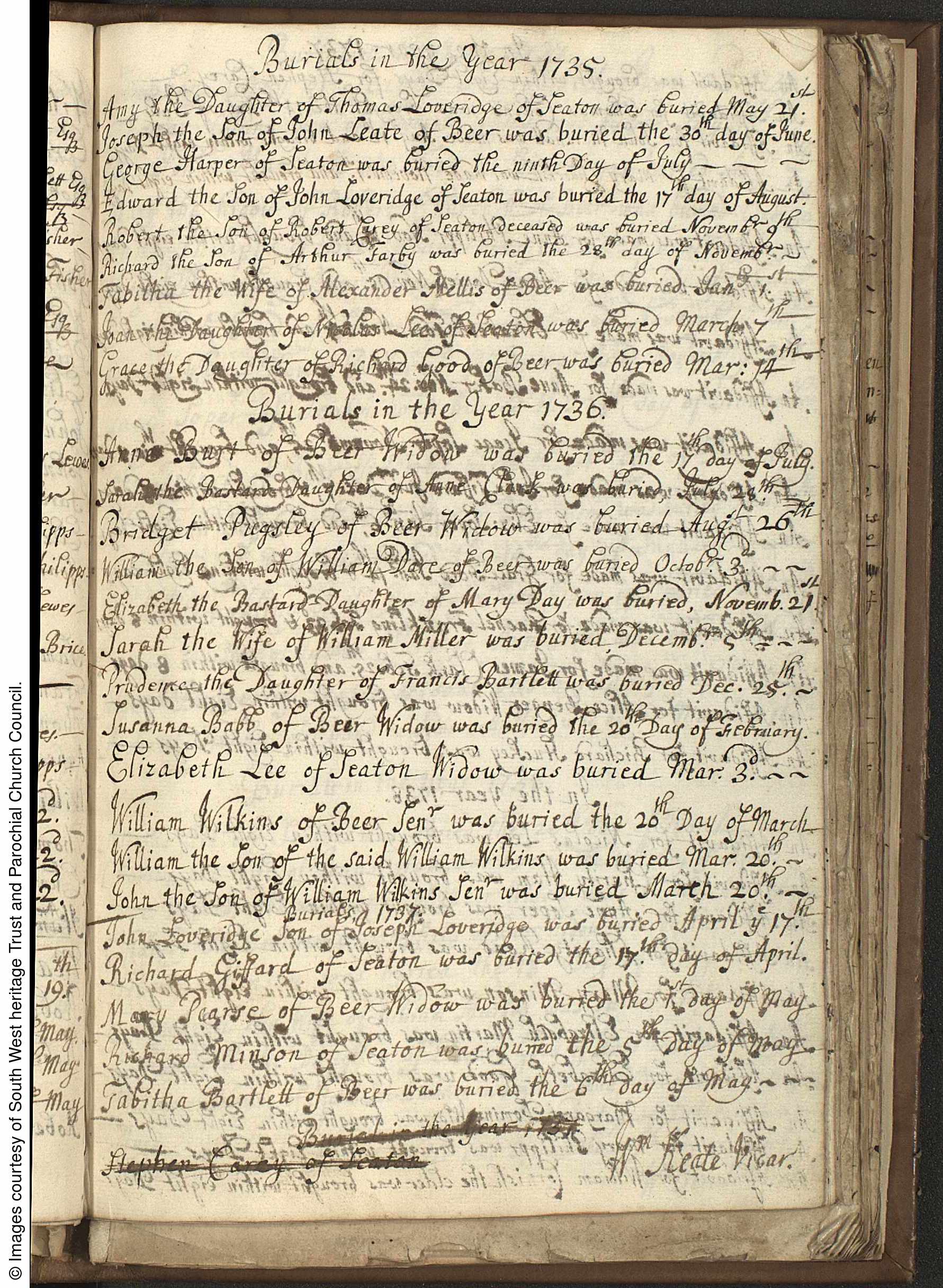 Cited from Parish Registers of St. Gregory, Seaton & Beer, Devon (Church of England)