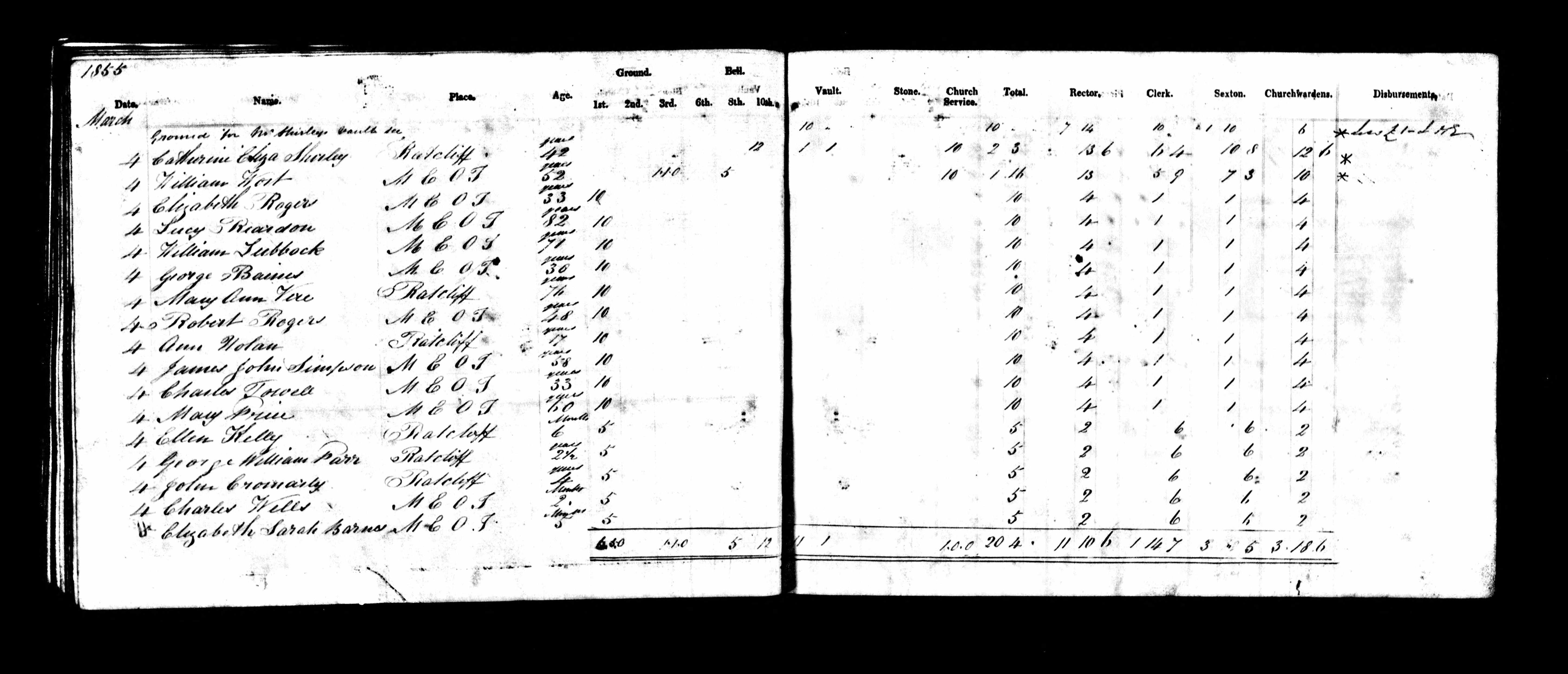Parish Registers of St Dunstan and All Saints, Stepney, Middlesex; Burial entry for James John Simpson, 4 Mar 1855.