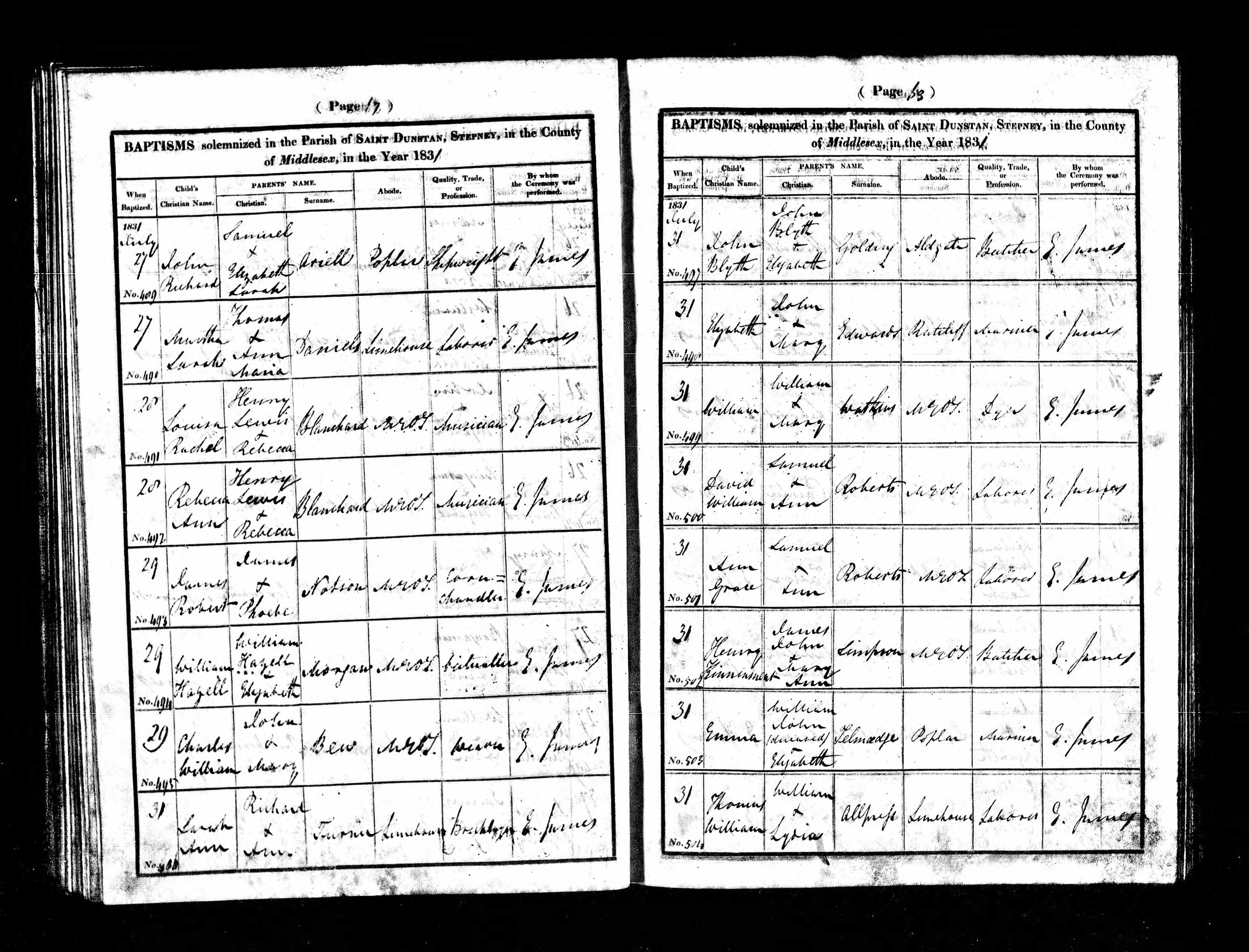- James John Simpson★ had occupation recorded as butcher on 31 Jul, 1831