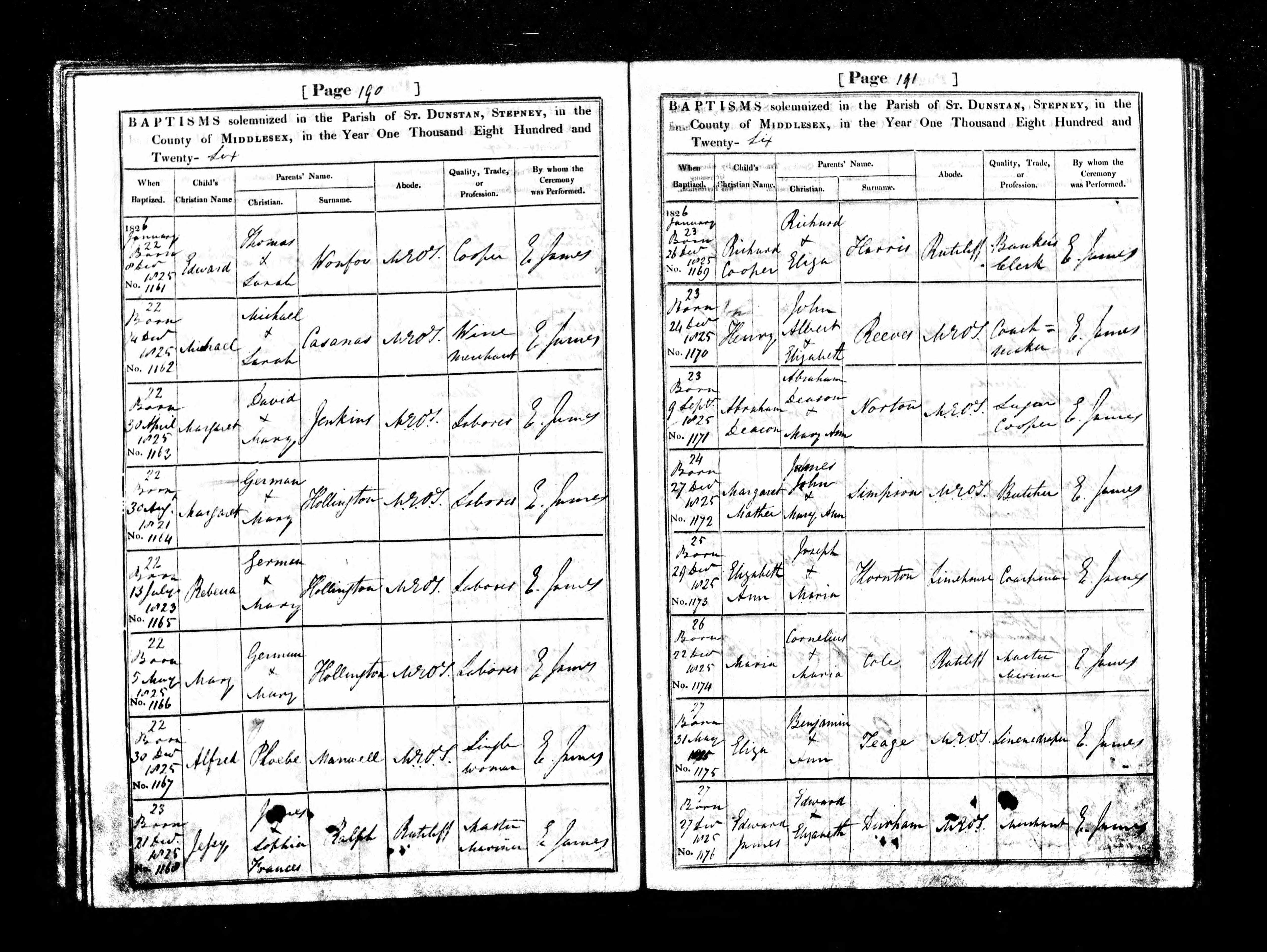 - James John Simpson★ was resident on 24 Jan, 1826 in Mile End Old Town, Middlesex, England