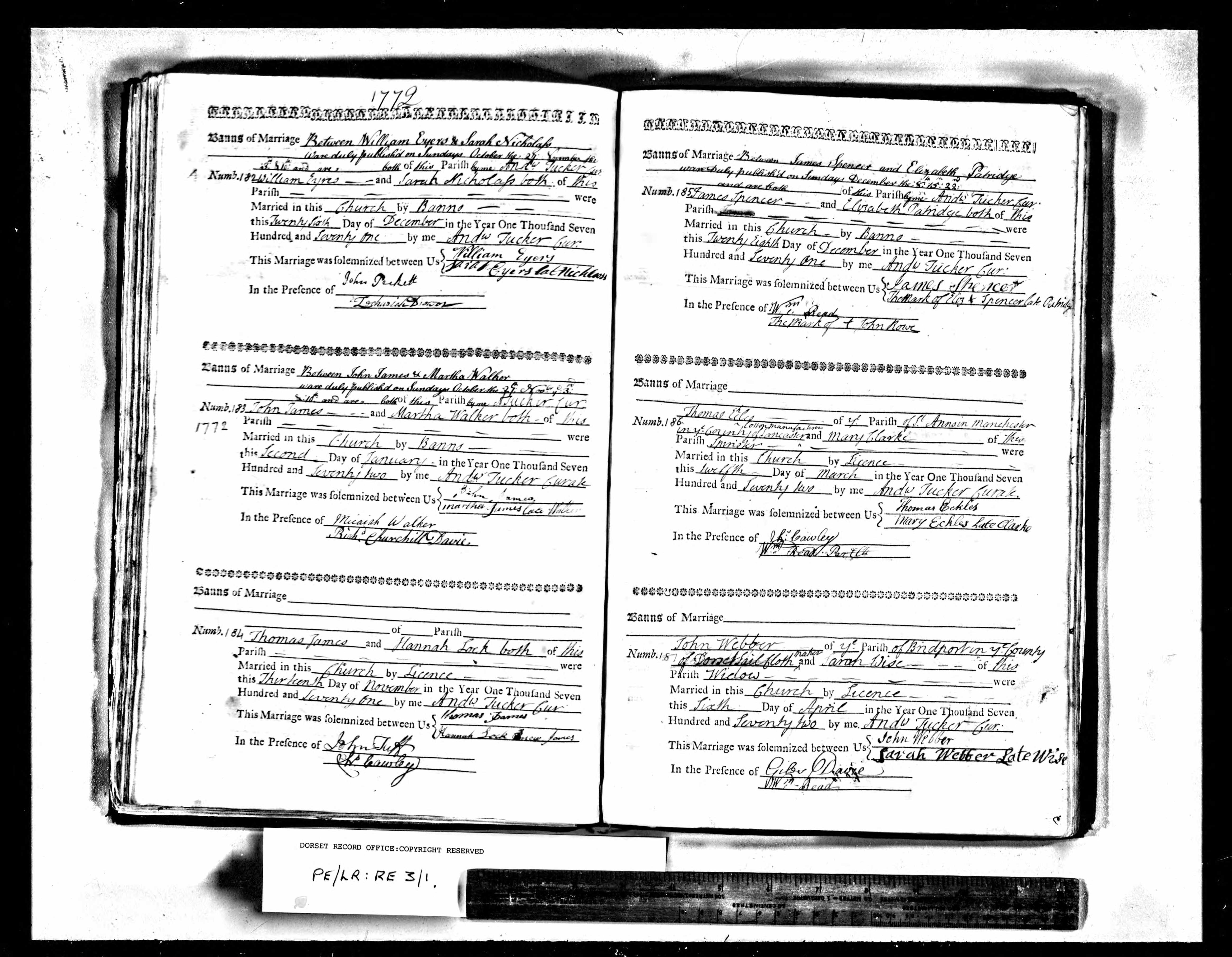 MarriageOfWilliamEyresAndSarahNicholass1771LymeRegis