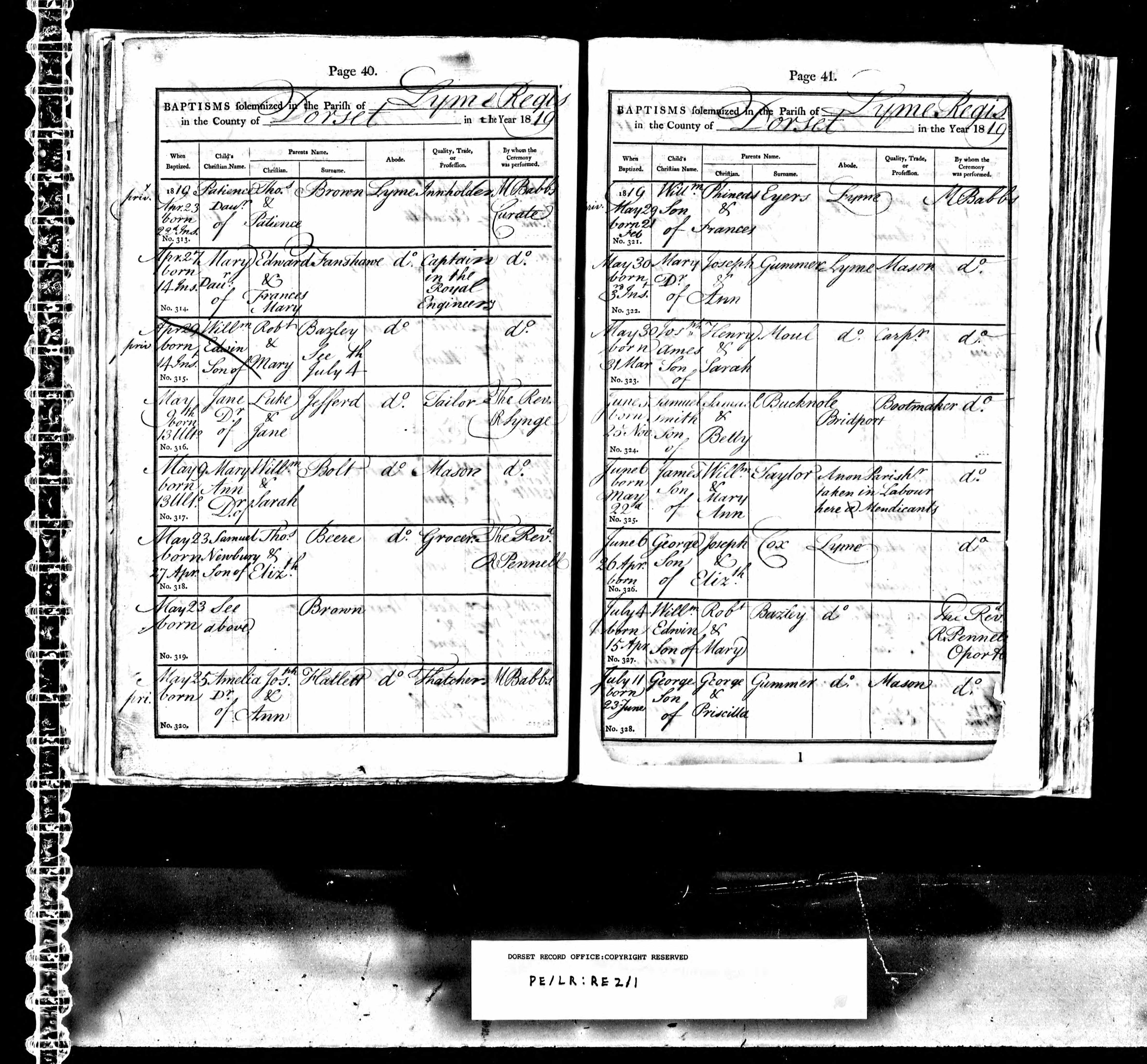 - William Eyers was baptised on 29 May, 1819 in Lyme Regis, Dorset, England