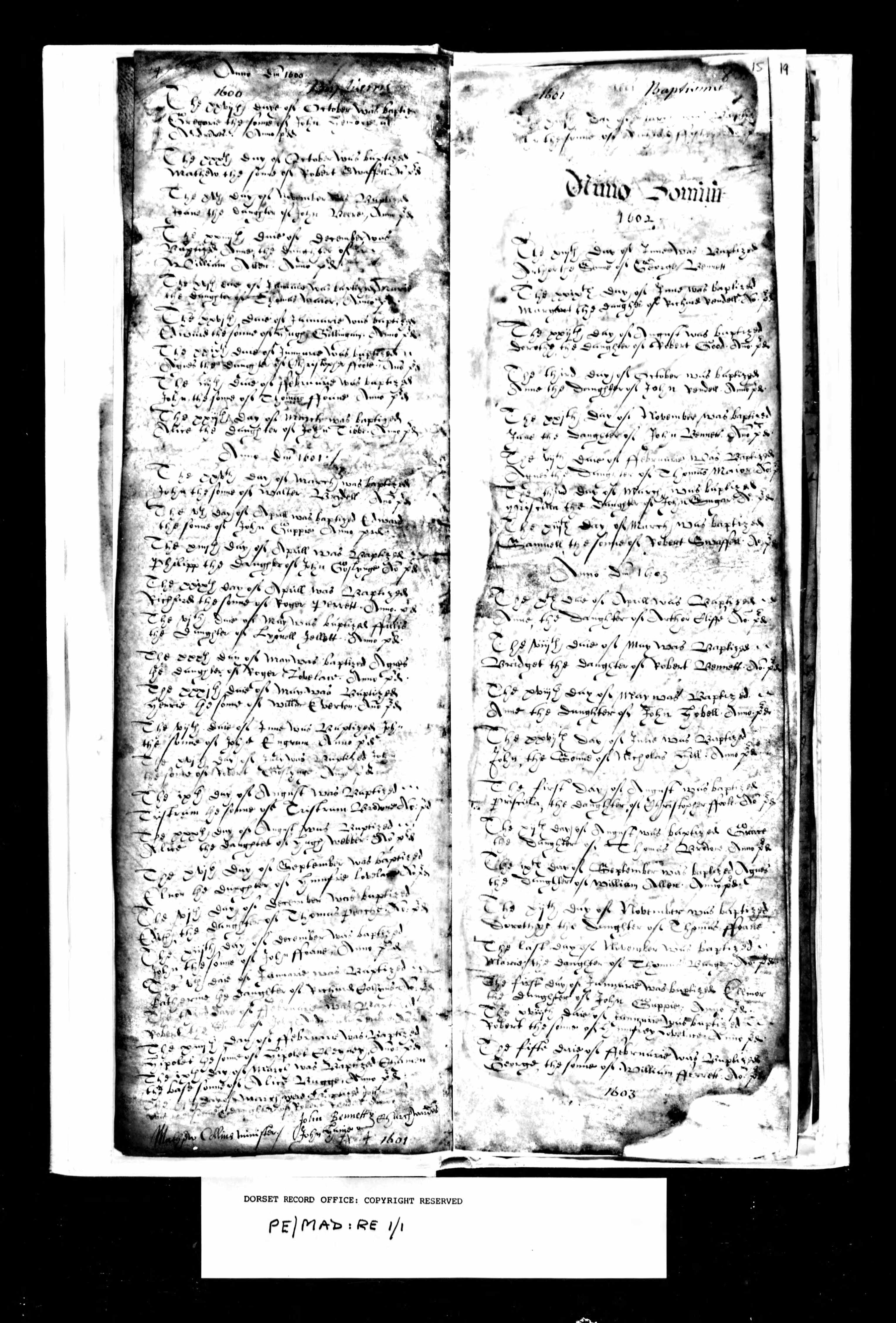 Cited from Parish Registers of St. Mary, Maiden Newton, Dorset (Church of England)