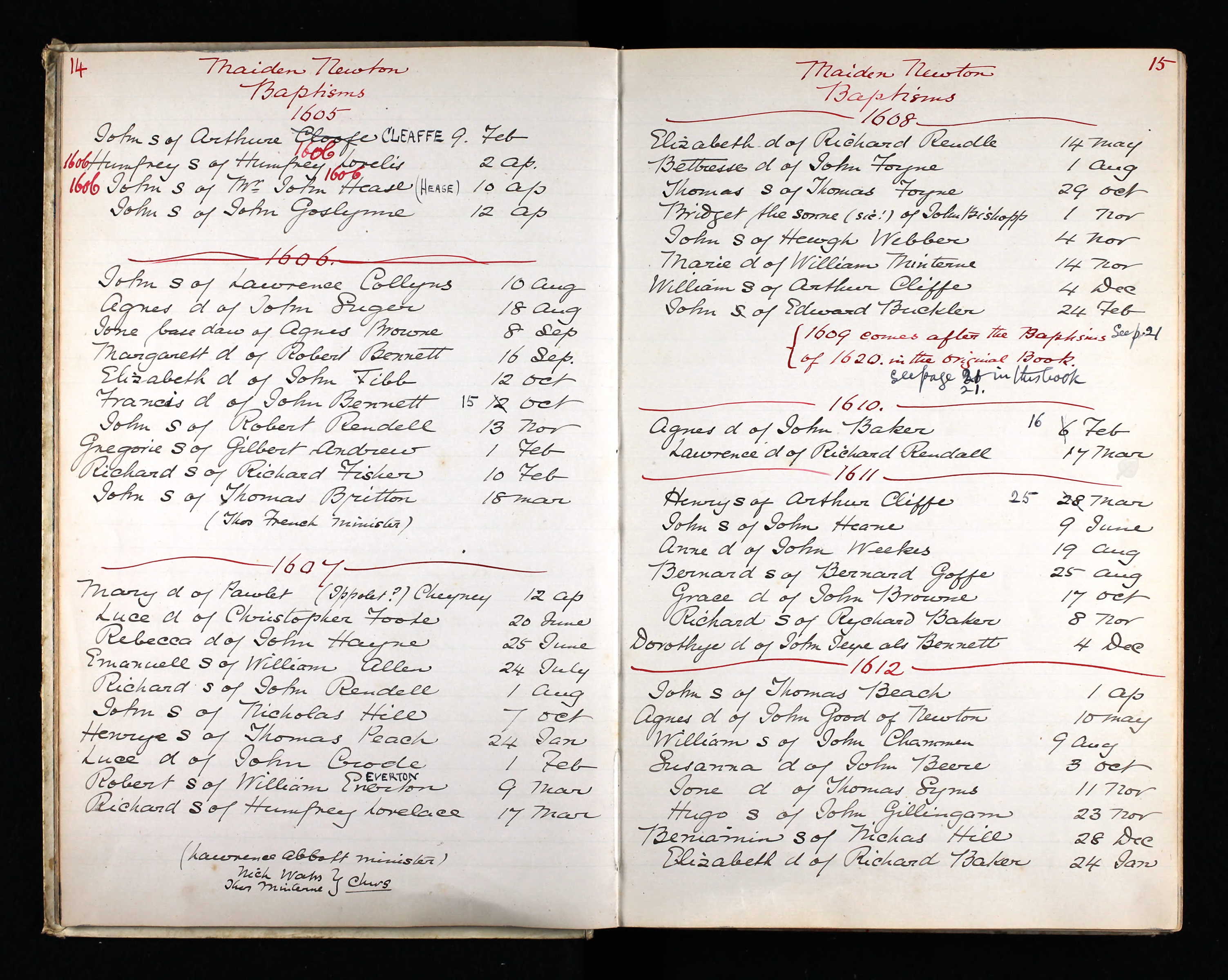 Cited from Parish Registers of St. Mary, Maiden Newton, Dorset (Church of England)