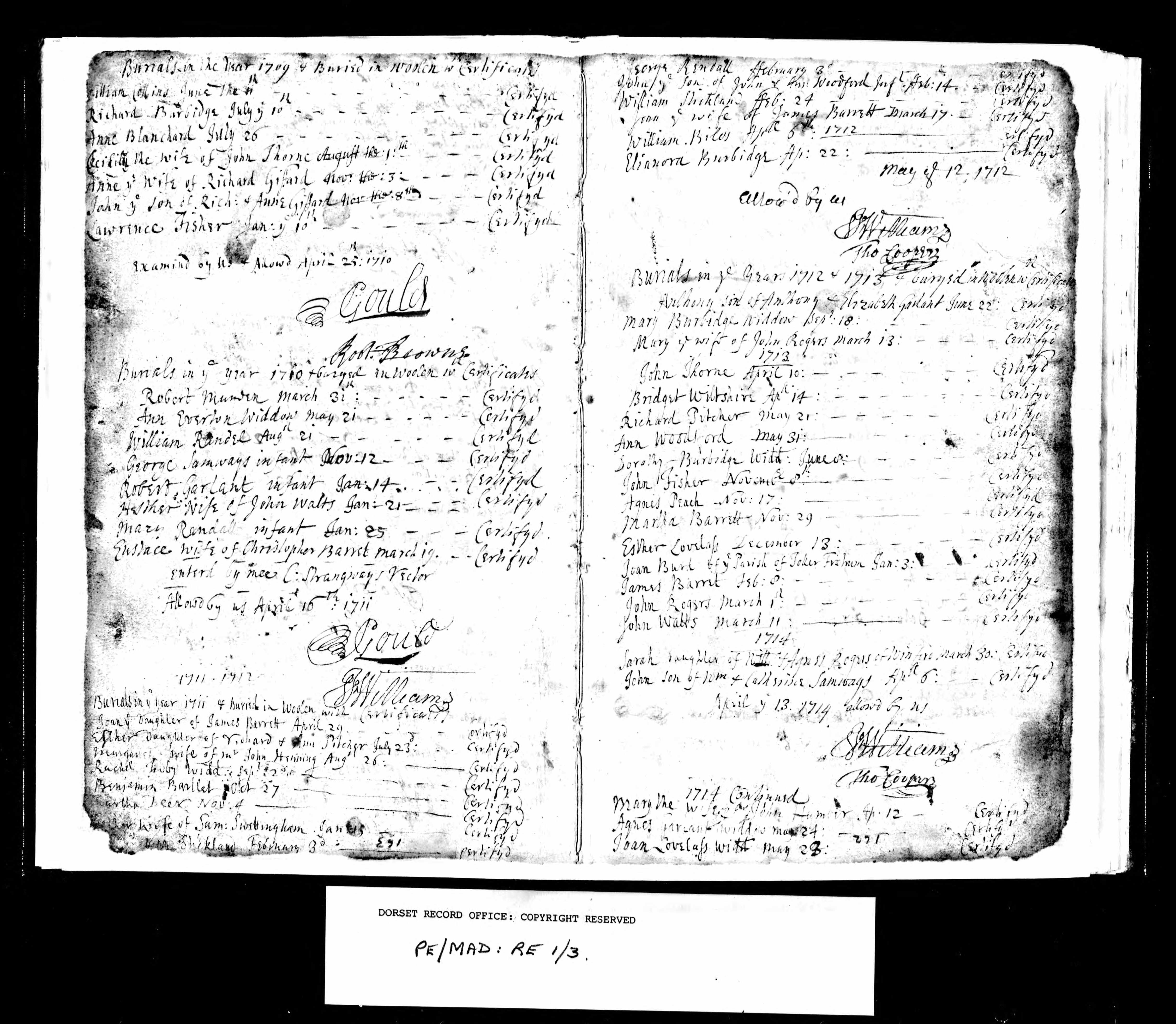 Cited from Parish Registers of St. Mary, Maiden Newton, Dorset (Church of England)