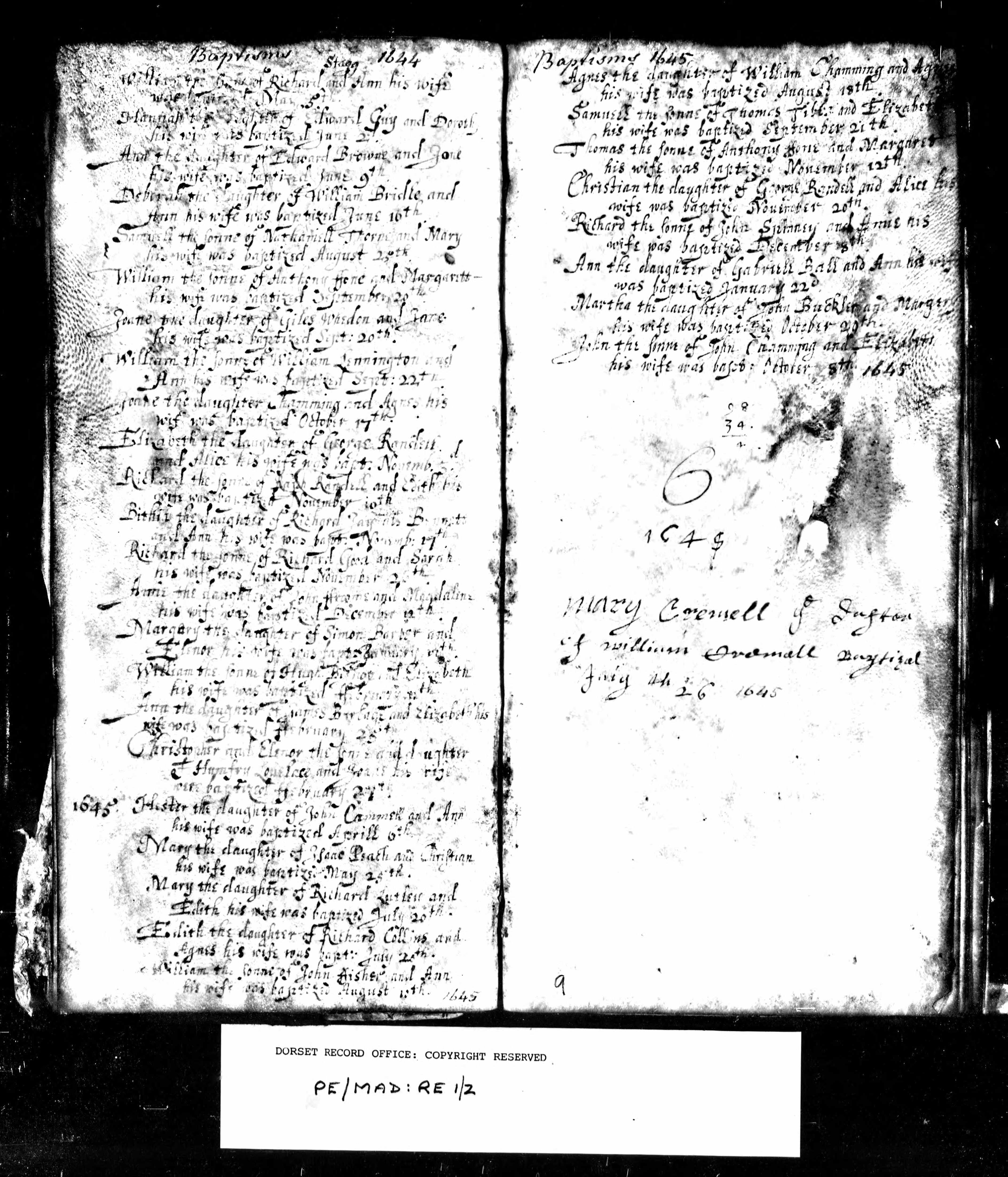 Cited from Parish Registers of St. Mary, Maiden Newton, Dorset (Church of England)