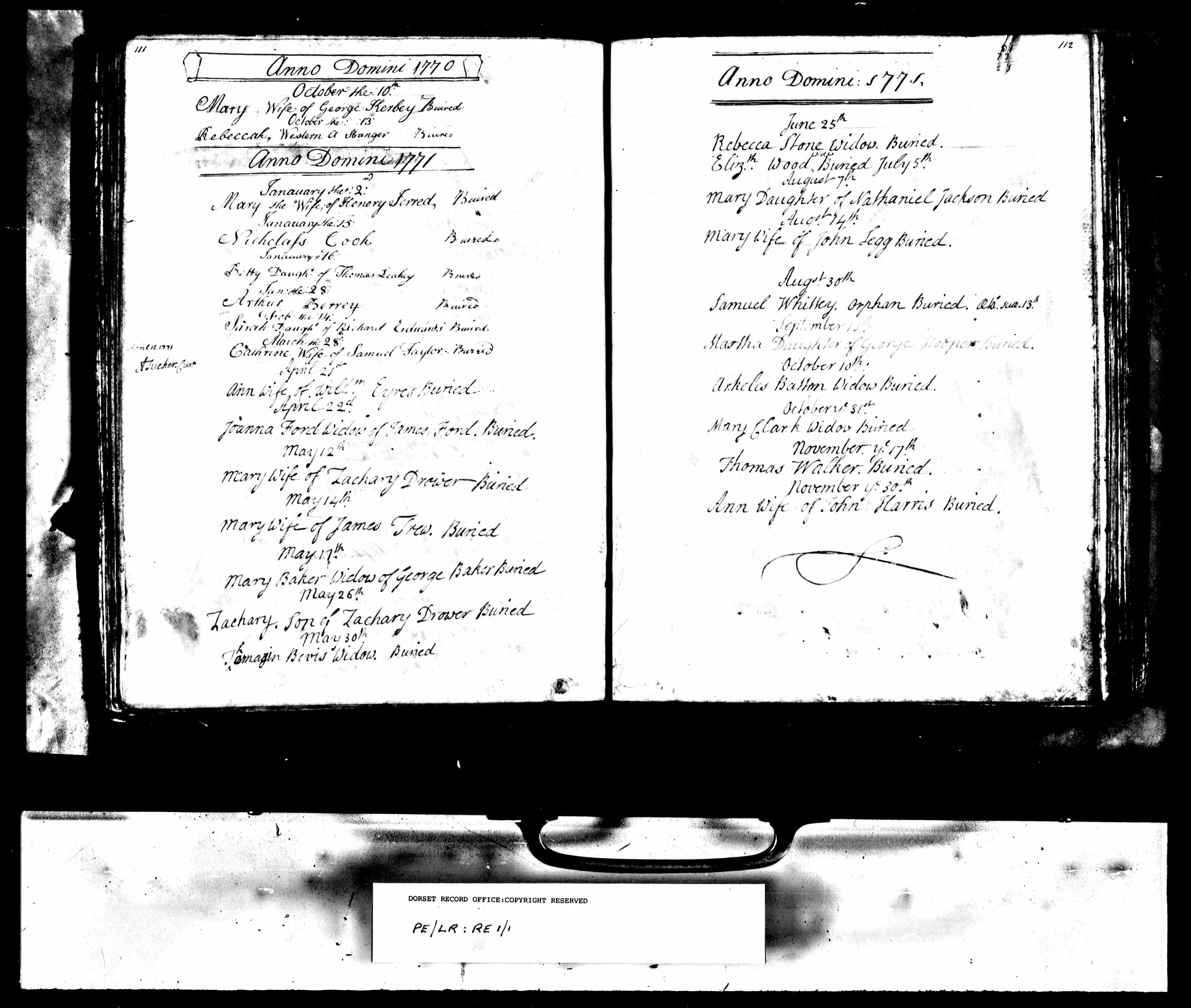Parish Registers of St. Michael the Archangel, Lyme Regis, Dorset; Burial entry for Ann Eyres, 21 Apr 1771.