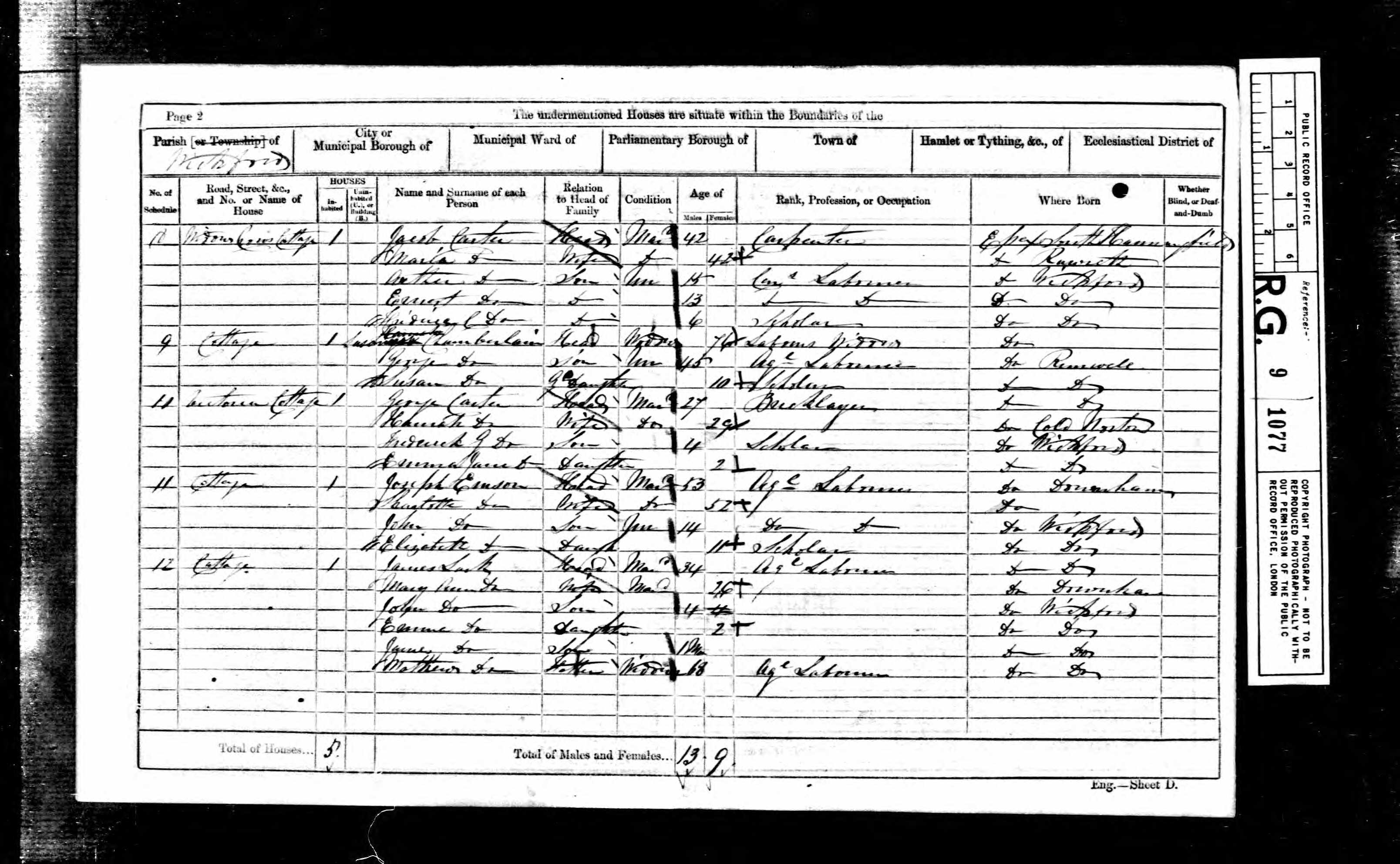 1861 England and Wales Census; Class RG9, Piece 1077, Folio 57, Page 2, Schedule 9.
