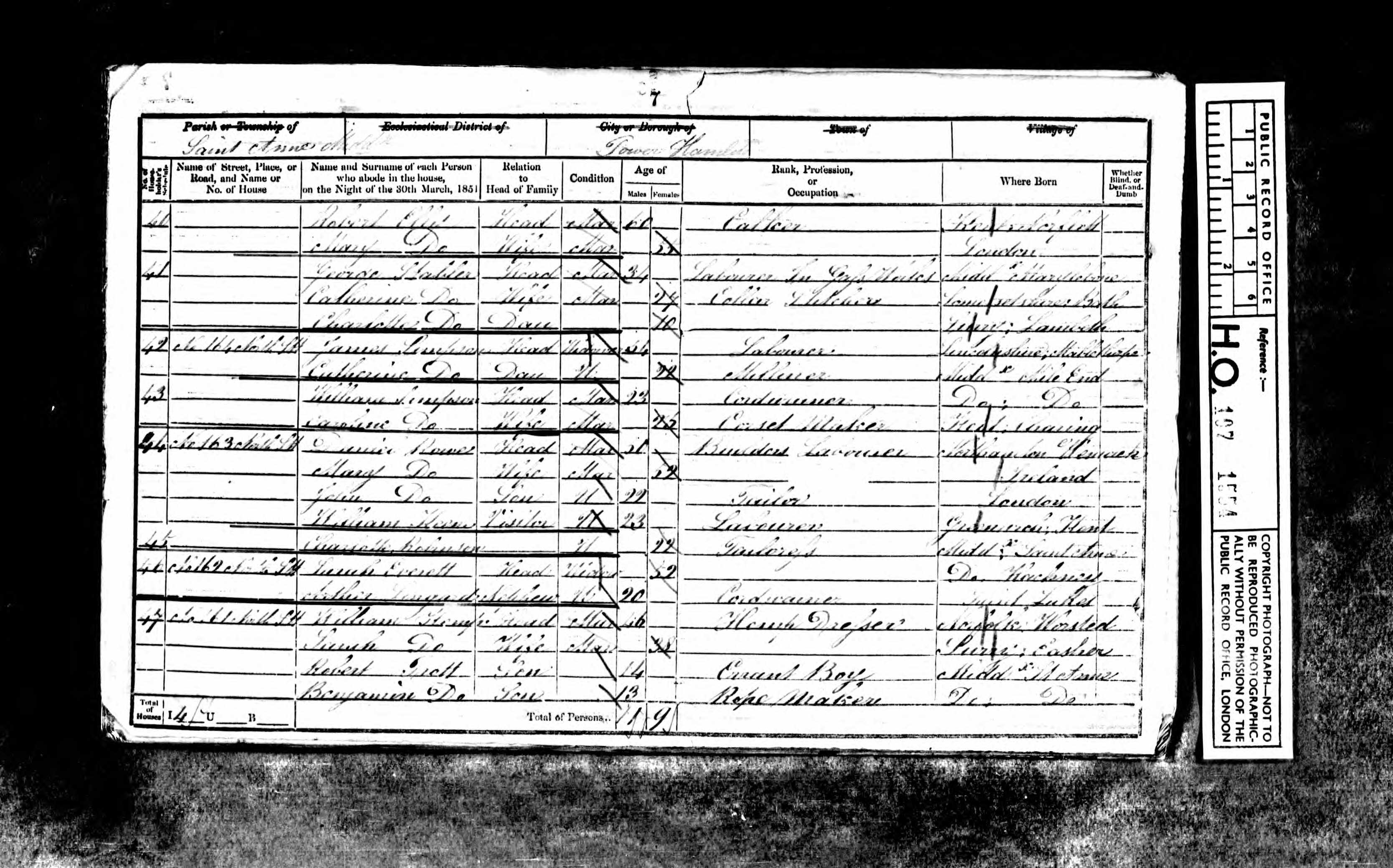 1851 England and Wales Census; Class HO107, Piece 1554, Folio 7, Page 7, Schedule 42 and 43.