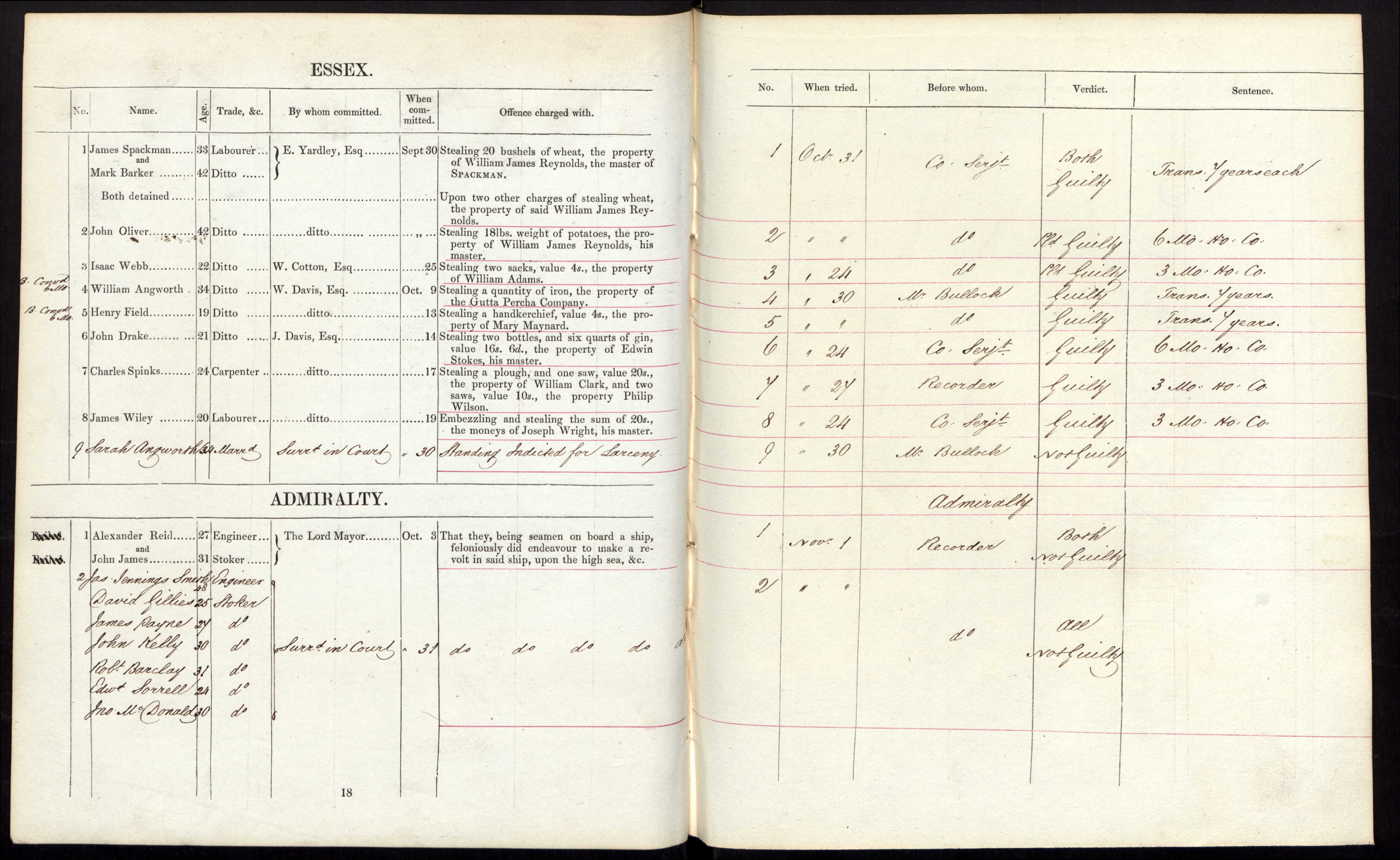 Home Office: Newgate Prison Calendar; HO 77; HO 77, Piece 55, Page 18, Jas Jennings Smith.