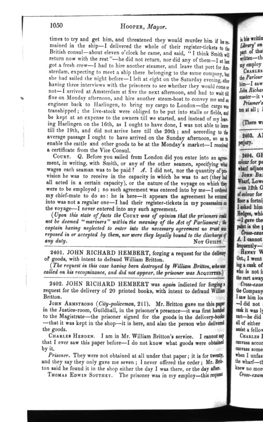 Cited from Proceedings of the Old Bailey