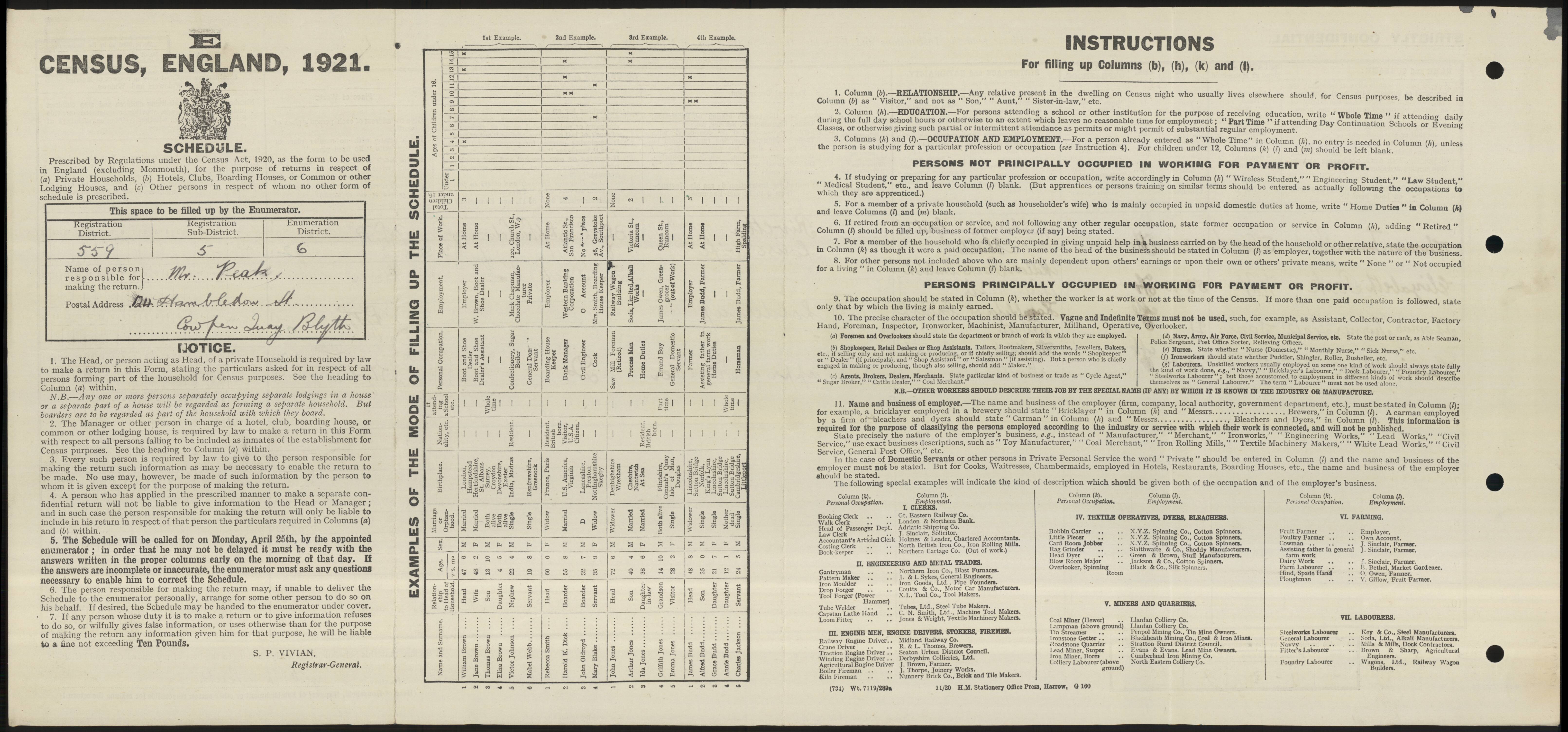 1921 England and Wales Census; Class RG15, Piece 25544, Pages 59 and 60.