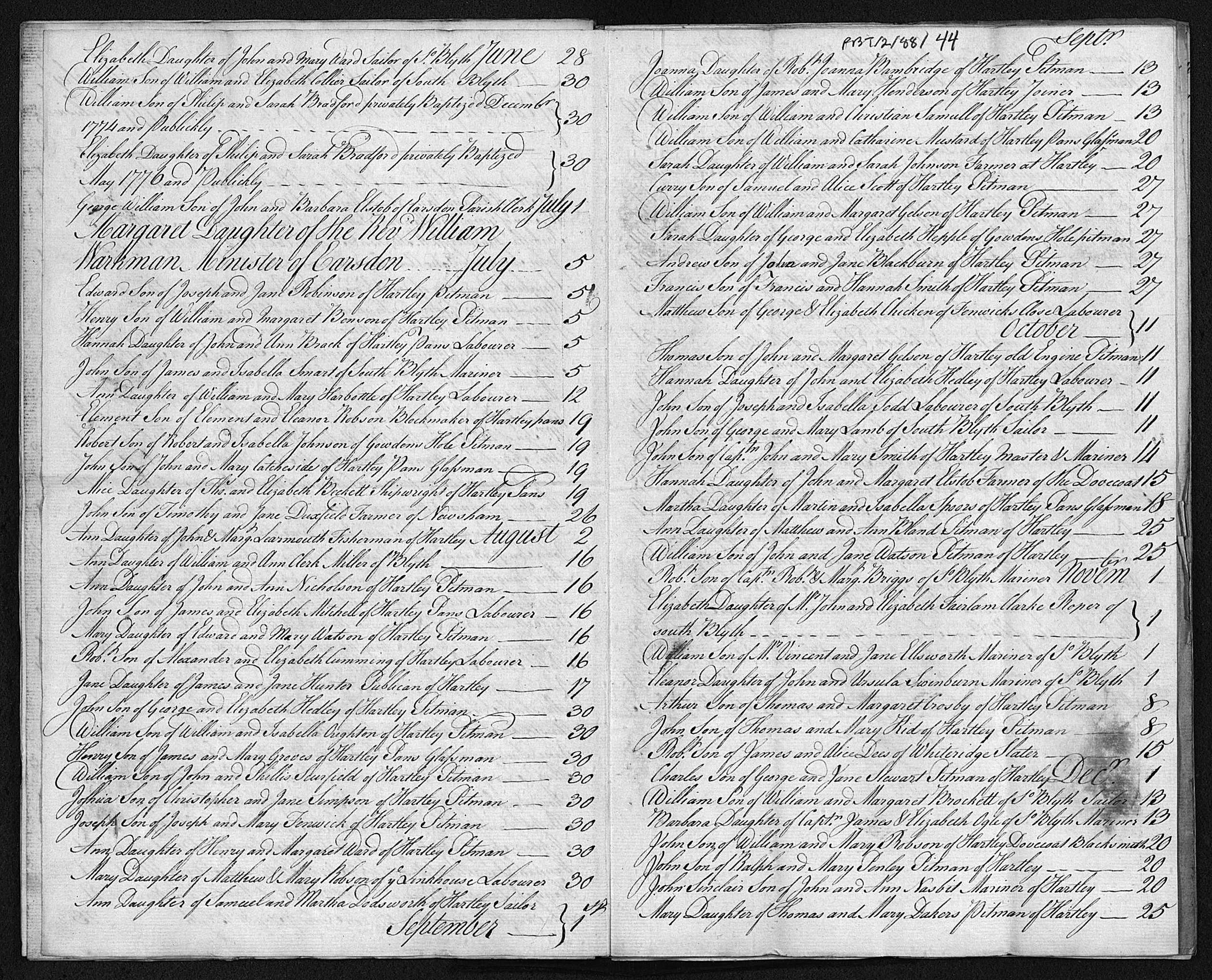 Cited from Bishop's Transcripts for the Diocese of Durham, England (Church of England)