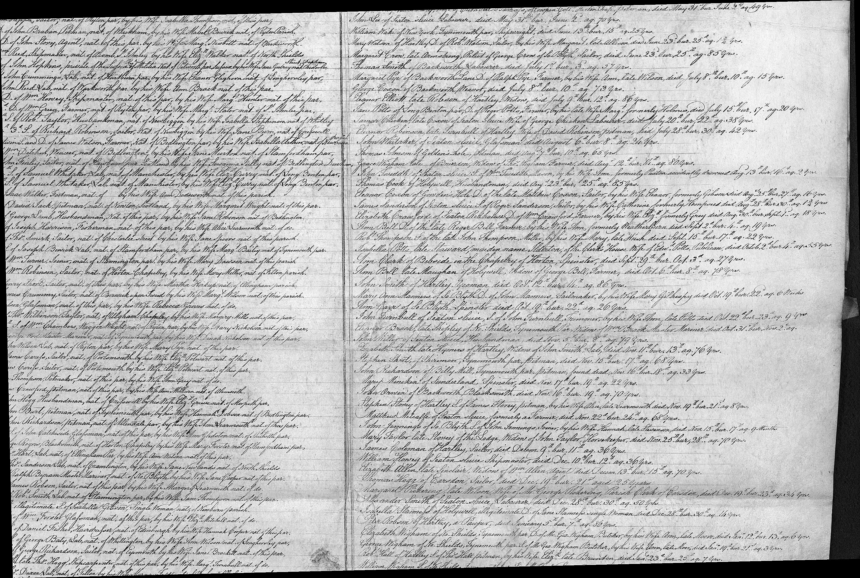 John Richardson of Billy Mill, Tynemouth par, pitman, found dead Nov 16th, bur 18th, age 33 years