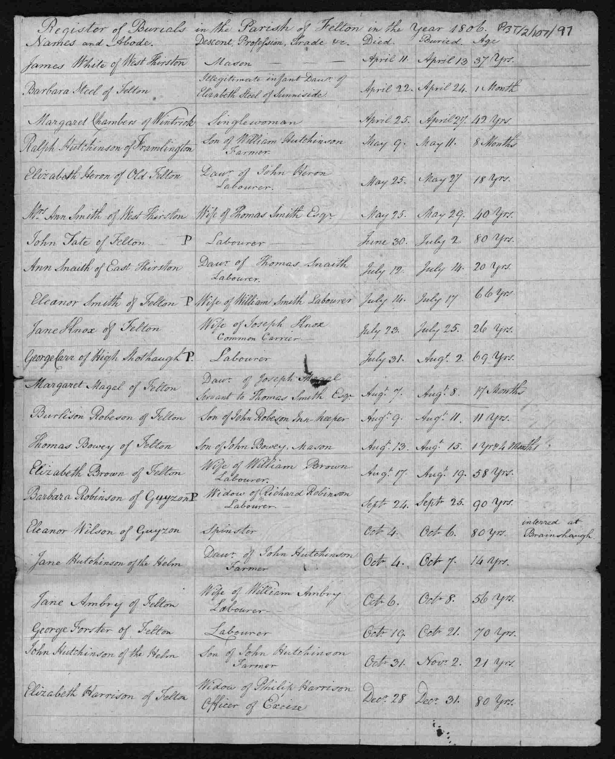 - Jane Halliwell★ was resident on 8 Oct, 1806 in Felton, Northumberland, England