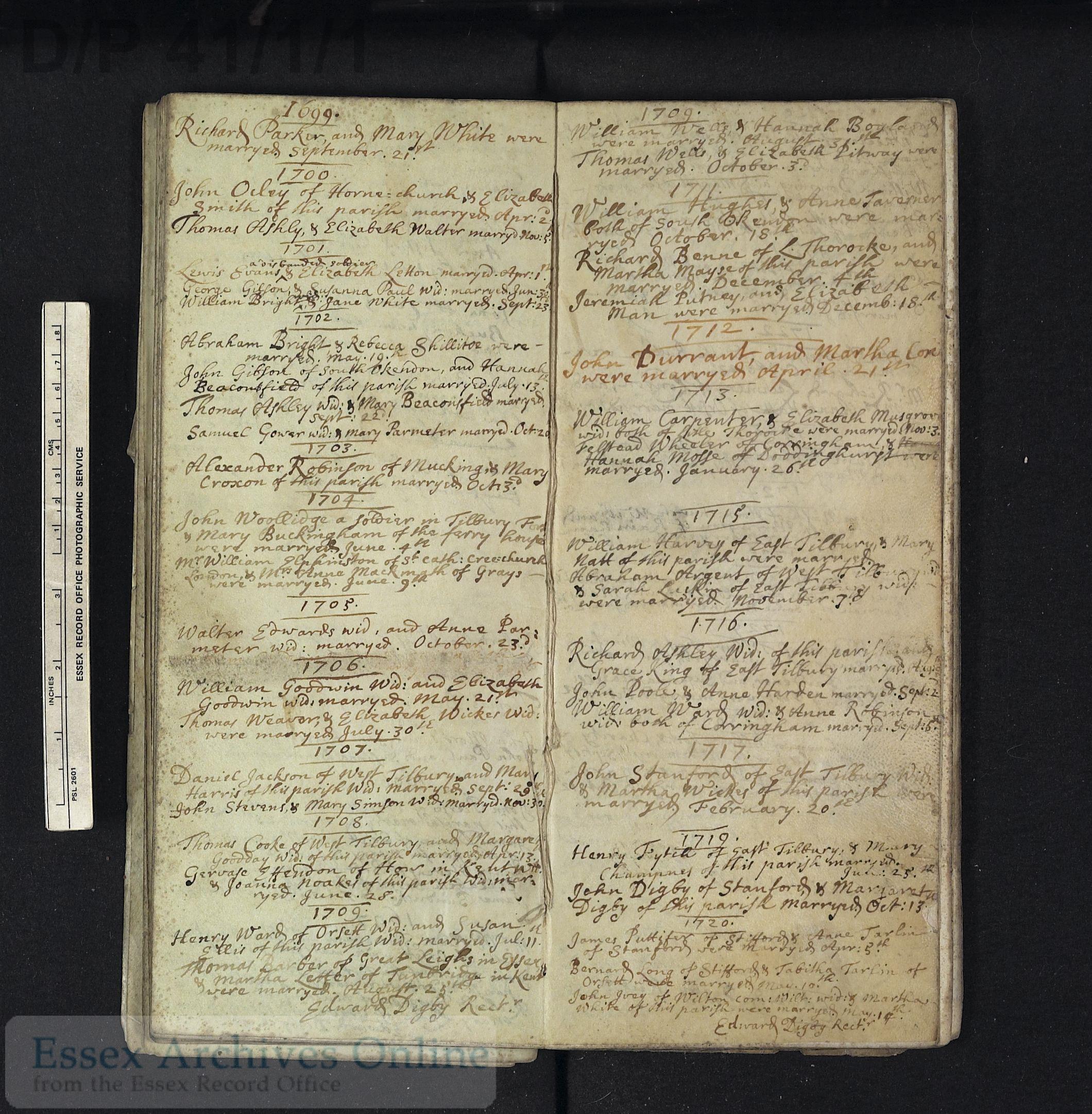 MarriageOfJamesPuttiferAndAnneTarlin1720ChadwellStMary