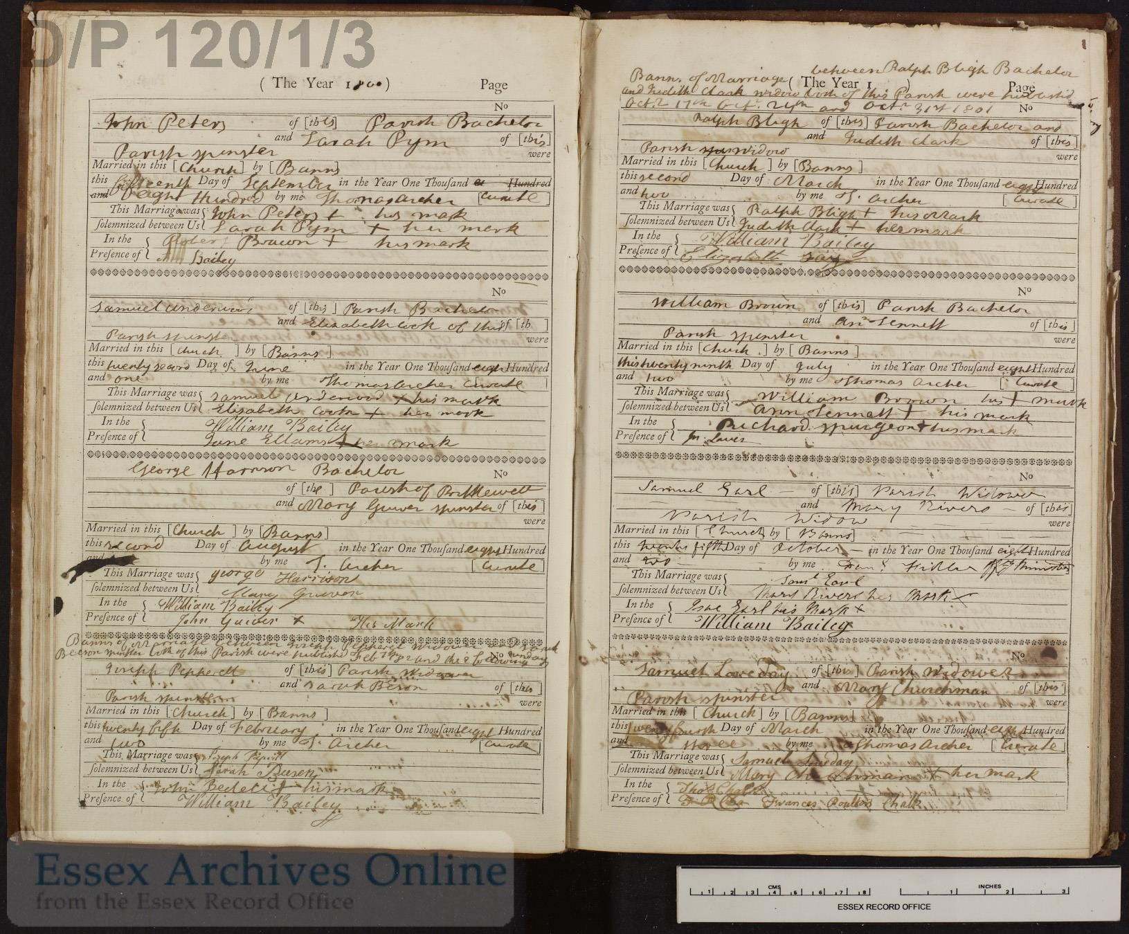Parish Registers of Holy Trinity, Southchurch, Essex; Marriage entry for George Harrison and Mary Guiver, 2 Aug 1801.