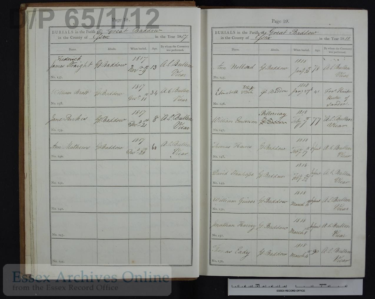 Cited from Parish Registers of St. Mary the Virgin, Great Baddow, Essex (Church of England)